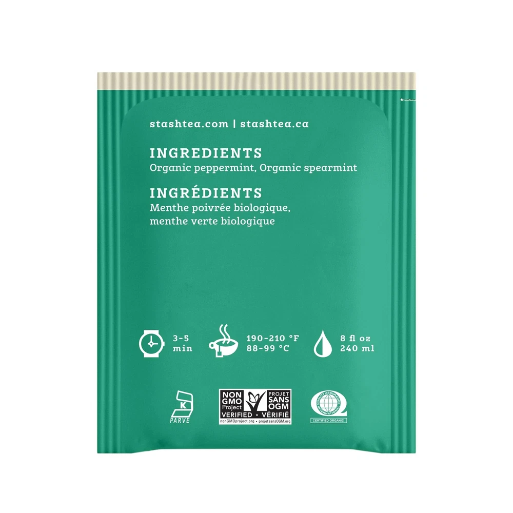 Stash Tea Organic Mint Blend, Caffeine-Free, Non-GMO Project Verified, Serve Hot or Iced, 96 Tea Bags, 16 count (6 pack) Description Happy Sipping! Back in 1972, in the basement of a classic Victorian home, two tea afficianados in Portland, Oregon set out to craft uplifting teas. 50 years later, we’re still convinced of the transformative power of tea to nurture both the mind and the body. That’s why we combine premium quality natural teas, herbs, and spices to create vitality-boosting blends with tantalizing flavors. As it turns out, happiness is just a steep away. Features: You'll be lost in lush fields of mint with one sip of this cool, refreshing blend of organic peppermint and spearmint leaves. Our Organic Mint Blend is an aromatic and ultra-minty caffeine-free treat. Steeping Instructions: 3-5 minutes at 190-210 degrees Fahrenheit Incomparable Quality: From herbal, black, and green to white, or oolong, our premium tea bags are packaged in stay fresh foil wrappers to deliver a high quality cup, from morning chai to bedtime chamomile Find Your Flavor: With over 150 teas to choose from including loose leaf, iced tea, green tea, decaffeinated black tea, chai, herbal teas and more, you're sure to find your next favorite with Stash Product Details: Brand: Stash Item Form: Teabags Flavor: Mint Tea Tea Variety: Peppermint Unit Count: 96 Count Package Dimensions : 9.92 x 5.98 x 5.75 inches; 15.52 ounces Manufacturer : Stash Tea Country of Origin : USA Handling We will ship all orders within 3 business days of payment. Delivery We do not ship outside of the Continental US. Feedback We take our reputation seriously, we buy and sell online, so we understand the value of trust. If you are unsatisfied with your order, please contact us and we will work with you to resolve it to your satisfaction.