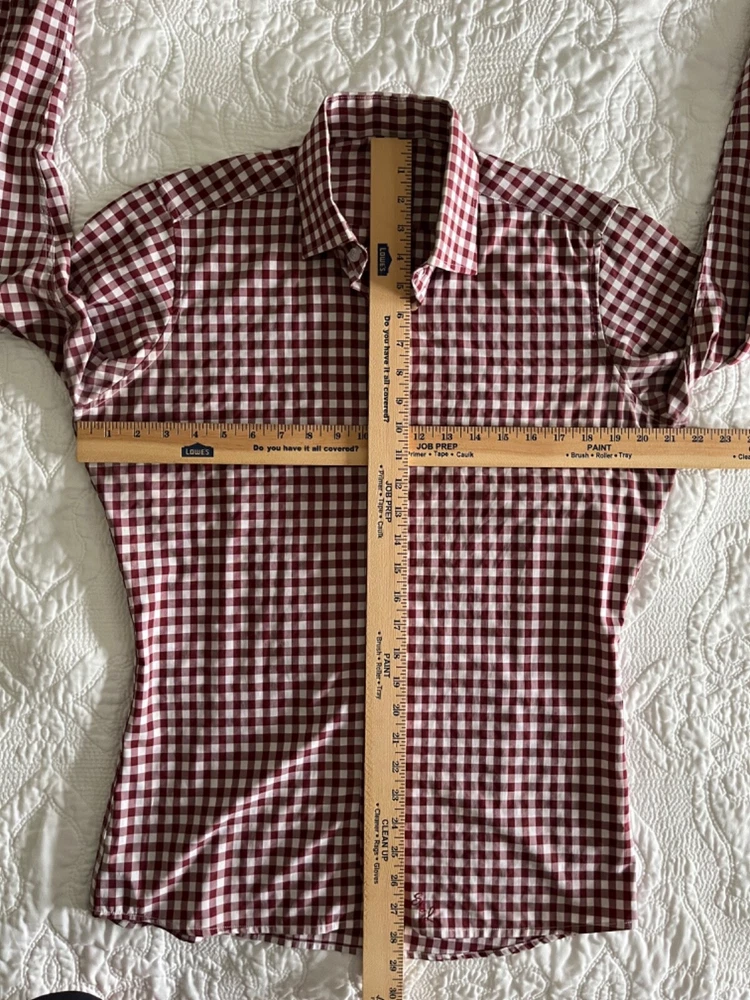 Closure: Button Top Cuff Style: Barrel Cuff Collar Style: Button-Down Theme: State Department: Men Fabric Wash: Light Neckline: Collared Size Type: Regular Occasion: Business, Formal, Party/Cocktail Type: Dress Shirt Brand: State and Liberty Sleeve Length: Long Sleeve Size: S Material: Polyester, Polyester Blend, Spandex Seller Notes: “Well cared for and in excellent condition.” Accents: Logo Color: Red Pattern: Check Features: Stretch Fit: Athletic
