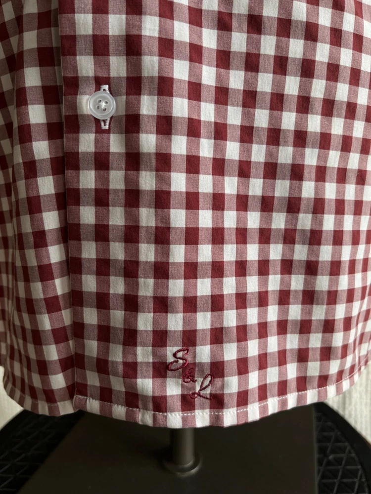 State & Liberty Sz. S Fitted Red Gingham Check L/S Shirt Hidden-Button Collar