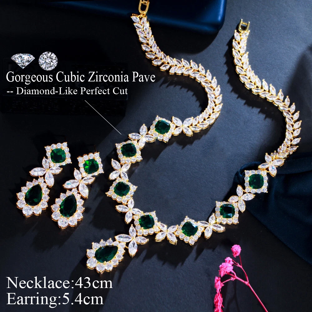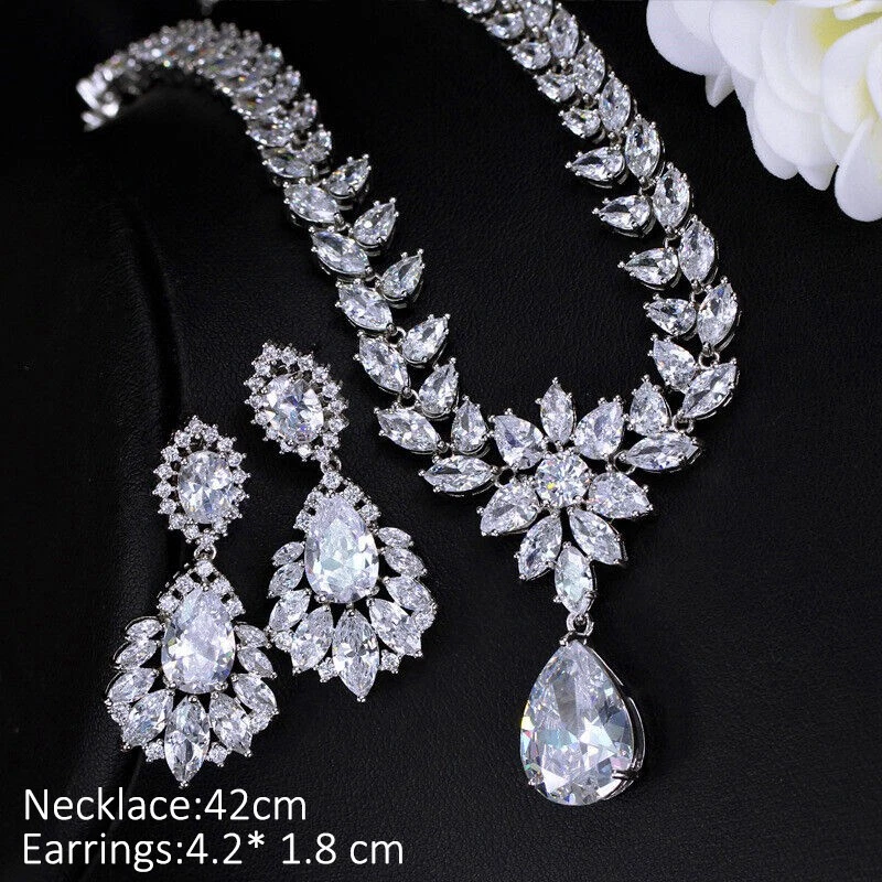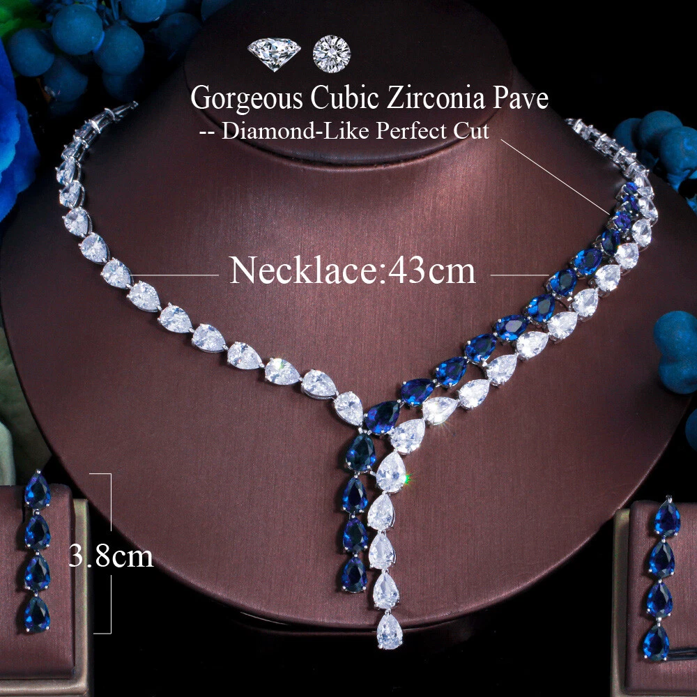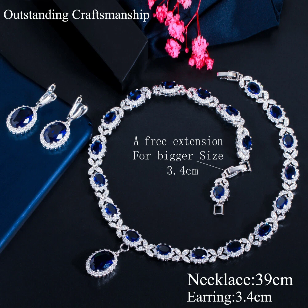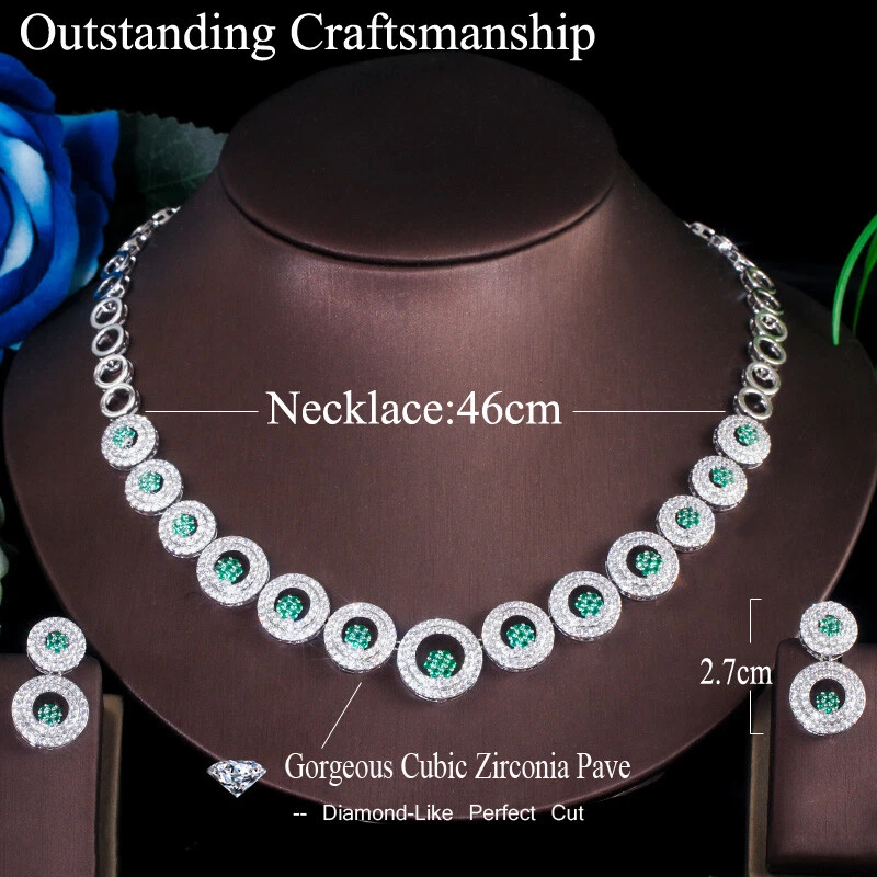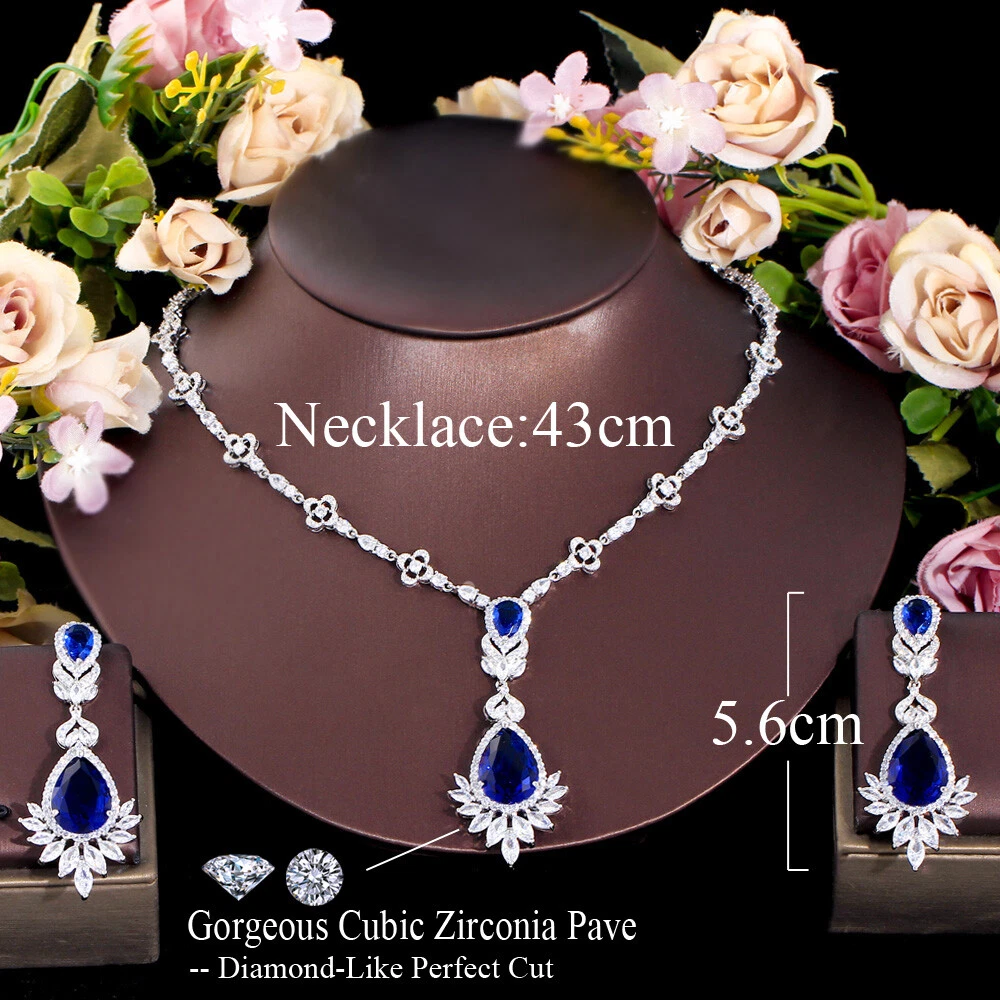 Statement White Crystal CZ Necklace Earrings Set Bridal Wedding Choker Jewelry Specifications: Condition: New Material: Cubic Zirconia Metal: Silver Plated/Yellow Gold Plated Color: White/Green/Blue Features: 1. CZ Stone Material - Top Level Cubic Zirconia. Excellent Cut Simulated Diamond. Enjoy the dazzling sparkle from cubic zirconia dangle earrings. 2. These Fashion Dangling Earrings are Suitable for Daily Wear. 3. Perfect for Various Occasions: Ideal for Bridal, Wedding, Prom, Pageant, Bridesmaids, Parties, Proms, Homecoming, Black Tie Formal Affairs, Holidays and Special Occasions. 4. A Perfect Jewelry Gift for Women on Valentine's day, Mother's Day, Christmas, Wedding , Anniversary, Graduation, Birthday. Package Includes: 1 Pair of Earrings 1 Pcs Necklace Payment Delivery details Terms of sales & Feedbacks About us & Contact us Our commitment Payment 1. We only ship item to your Ebay verified address . Please Make sure all address are the same 2.Please leave note in ebay when making the payment if you have any special request (colors/size). Delivery details We only send items to the registered eBay address.Items will be shipped within 2 business days from the date payment is received (not include public holiday and weekend) . As per eBay regulations, import duties, taxes, and customs charges are the buyer's responsibility. Please check with your country's customs office to determine what these additional costs may be prior to bidding or buying. Terms of sales & Feedbacks After-Sale Please contact us to request a return/replace/refund authorization .It will be best if you use ebay message to contact me. 1, Return and replacement request is available only the requests within 30 days after parcel received. 2, Returning the item as the same condition as received. Situation and solution Defectives ---Please contact us and provide a photo of the defective part. After situation confirmed,we will offer you refund/return/replacement according to the situation Not as Described ---Please contact us and provide a photo of the wrong part. After situation confirmed,we will offer you refund/return/replacement according to the situation Not Received ---Please undersatnding shipping on the way was out of our control ,because of the busy shipping season,holidays,bad weather or force majeure etc. It may be delay for days. But if it took too much time and not deliveried, Please message me, I will offer you solution for it. Feedbacks 1. If you are satisfied with our service, please leave us a + Good feedback and rate the details of the transaction (DSR) with a. . When you rate the shipping time part please take international transit into consideration.] Your recognition will make us more confident to develop business and serve you better. 2. Please contact us first if you have any problem with the items,we will solve it in time ! 3. Please do not leave Neutral or Negative Feedback before you contact us, Thanks For Your Business ! About us & Contact us Working time: Chinese time(Eastern eight zones):Monday to Friday ,9:00 am to 6:00 pm. We do not work on chinese legal holiday. Message reply: We will reply all messages within 24 hours of business time. Please contact us via ebay message, it was the best way for both you and us to solve problems. Any questions or anything you need, please feel free to contact us. Our commitment 1.Wholesale price will be offered to you if you need in bulk ! 2.About Size