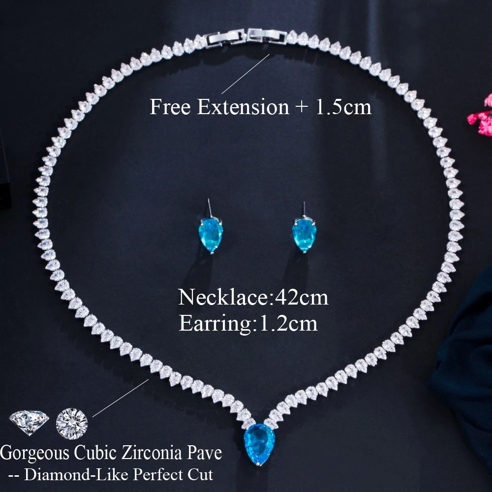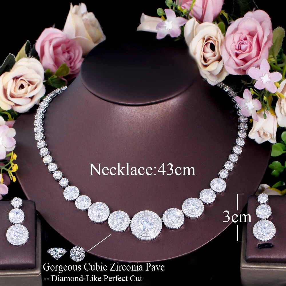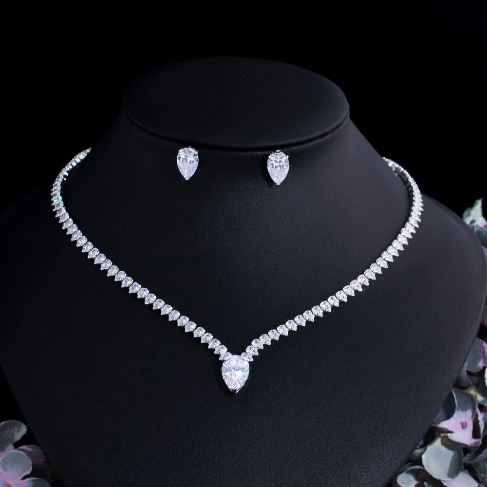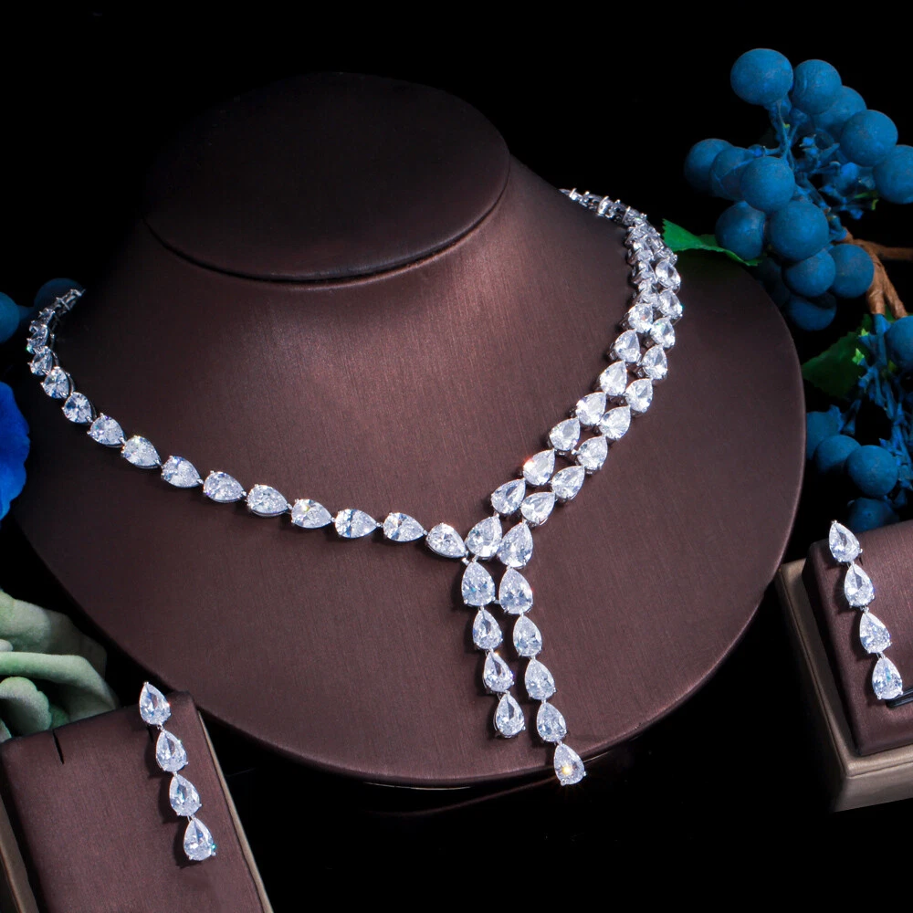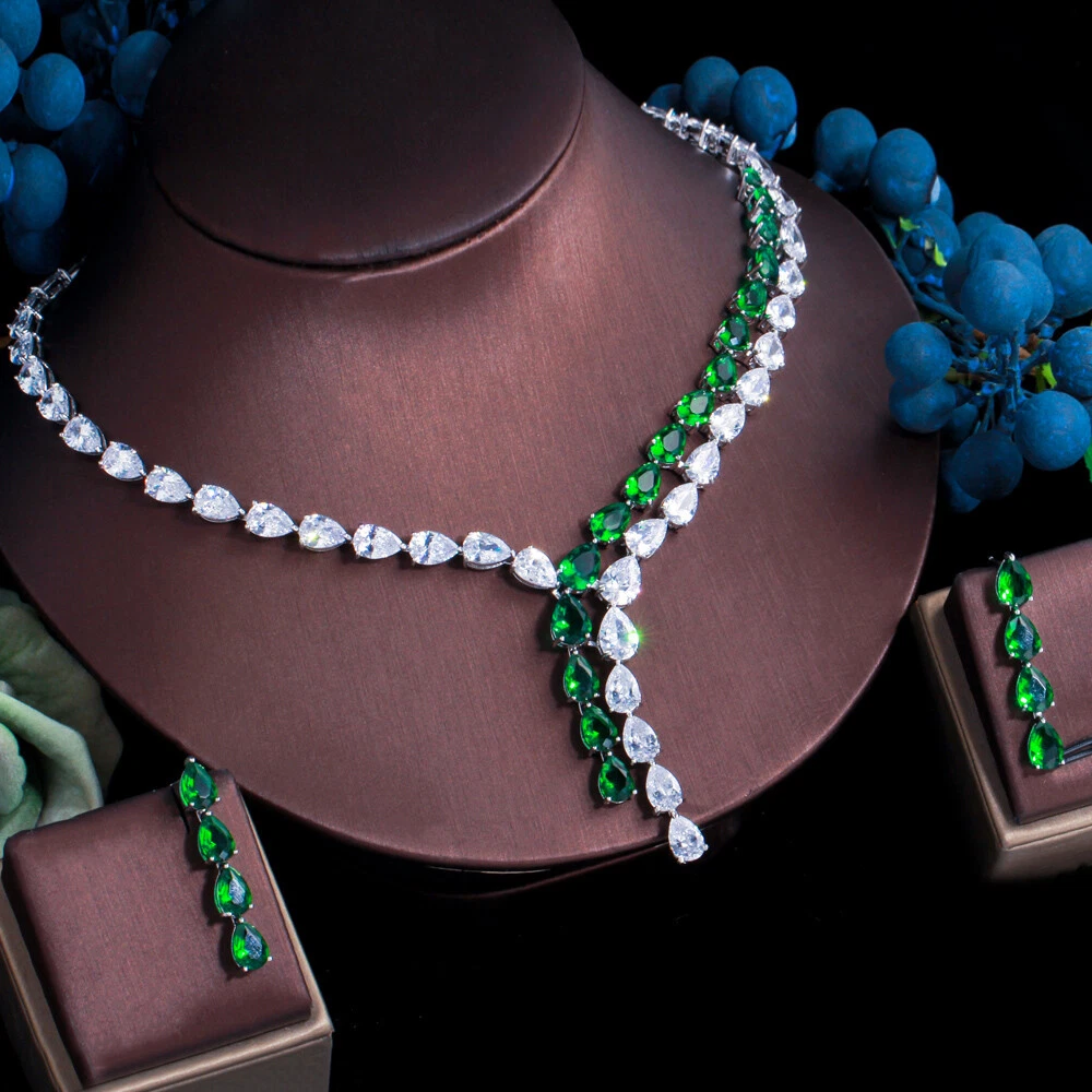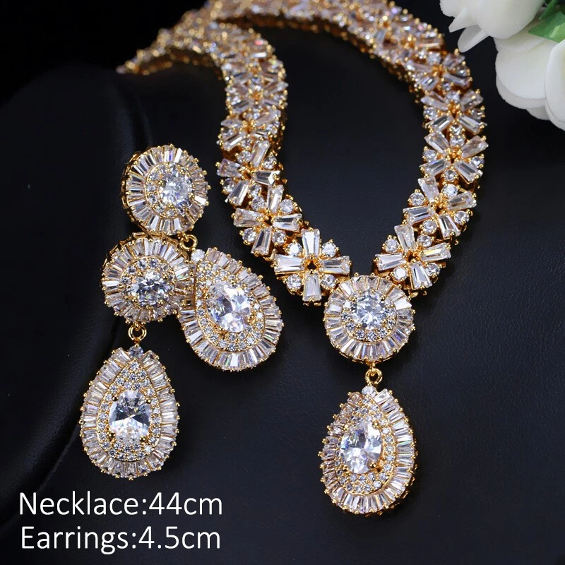 Statement White Crystal CZ Necklace Earrings Set Bridal Wedding Choker Jewelry Specifications: Condition: New Material: Cubic Zirconia Metal: Silver Plated/Yellow Gold Plated Color: White/Green/Blue Features: 1. CZ Stone Material - Top Level Cubic Zirconia. Excellent Cut Simulated Diamond. Enjoy the dazzling sparkle from cubic zirconia dangle earrings. 2. These Fashion Dangling Earrings are Suitable for Daily Wear. 3. Perfect for Various Occasions: Ideal for Bridal, Wedding, Prom, Pageant, Bridesmaids, Parties, Proms, Homecoming, Black Tie Formal Affairs, Holidays and Special Occasions. 4. A Perfect Jewelry Gift for Women on Valentine's day, Mother's Day, Christmas, Wedding , Anniversary, Graduation, Birthday. Package Includes: 1 Pair of Earrings 1 Pcs Necklace Payment Delivery details Terms of sales & Feedbacks About us & Contact us Our commitment Payment 1. We only ship item to your Ebay verified address . Please Make sure all address are the same 2.Please leave note in ebay when making the payment if you have any special request (colors/size). Delivery details We only send items to the registered eBay address.Items will be shipped within 2 business days from the date payment is received (not include public holiday and weekend) . As per eBay regulations, import duties, taxes, and customs charges are the buyer's responsibility. Please check with your country's customs office to determine what these additional costs may be prior to bidding or buying. Terms of sales & Feedbacks After-Sale Please contact us to request a return/replace/refund authorization .It will be best if you use ebay message to contact me. 1, Return and replacement request is available only the requests within 30 days after parcel received. 2, Returning the item as the same condition as received. Situation and solution Defectives ---Please contact us and provide a photo of the defective part. After situation confirmed,we will offer you refund/return/replacement according to the situation Not as Described ---Please contact us and provide a photo of the wrong part. After situation confirmed,we will offer you refund/return/replacement according to the situation Not Received ---Please undersatnding shipping on the way was out of our control ,because of the busy shipping season,holidays,bad weather or force majeure etc. It may be delay for days. But if it took too much time and not deliveried, Please message me, I will offer you solution for it. Feedbacks 1. If you are satisfied with our service, please leave us a + Good feedback and rate the details of the transaction (DSR) with a. . When you rate the shipping time part please take international transit into consideration.] Your recognition will make us more confident to develop business and serve you better. 2. Please contact us first if you have any problem with the items,we will solve it in time ! 3. Please do not leave Neutral or Negative Feedback before you contact us, Thanks For Your Business ! About us & Contact us Working time: Chinese time(Eastern eight zones):Monday to Friday ,9:00 am to 6:00 pm. We do not work on chinese legal holiday. Message reply: We will reply all messages within 24 hours of business time. Please contact us via ebay message, it was the best way for both you and us to solve problems. Any questions or anything you need, please feel free to contact us. Our commitment 1.Wholesale price will be offered to you if you need in bulk ! 2.About Size