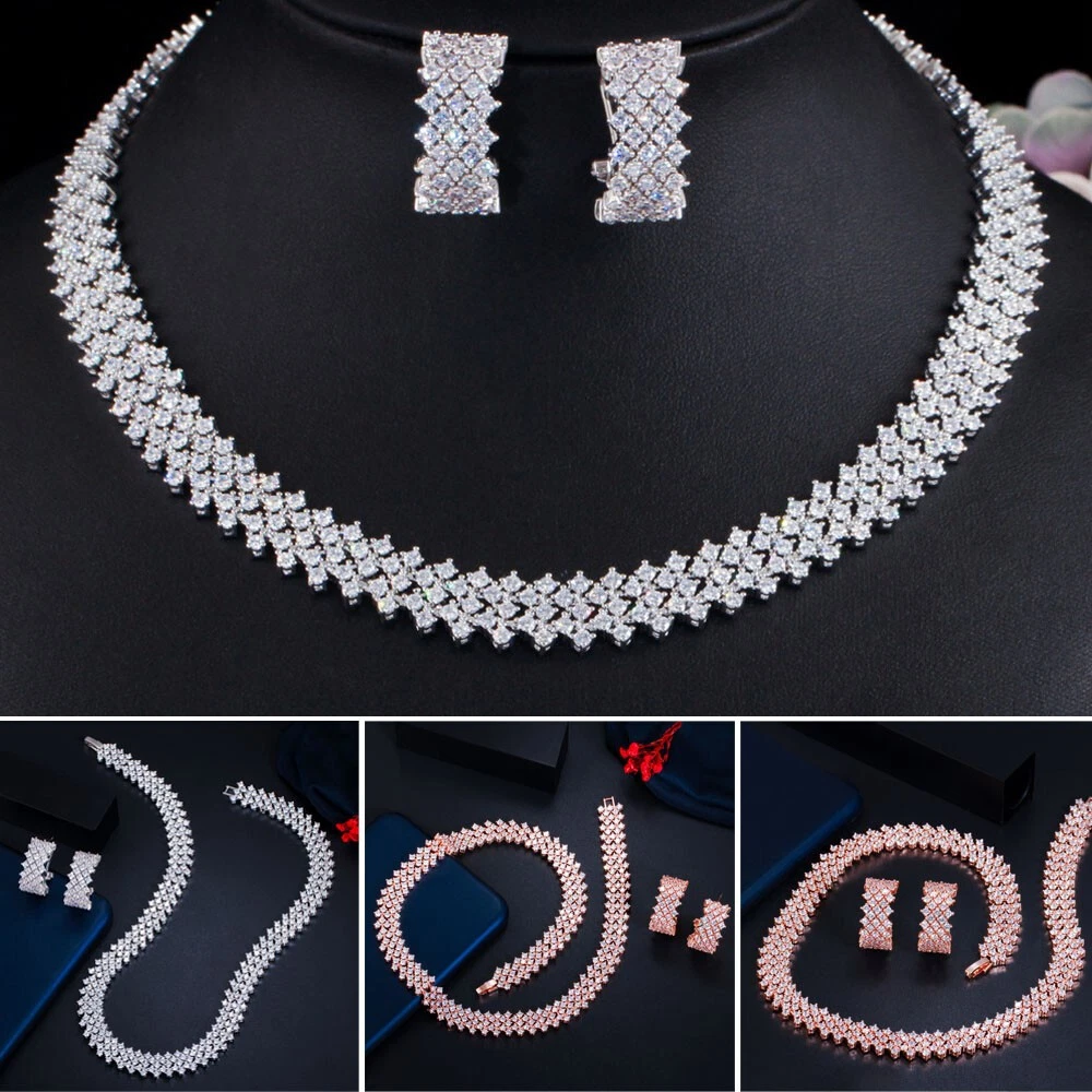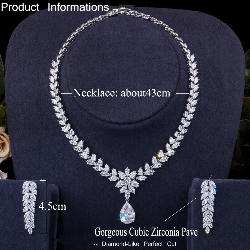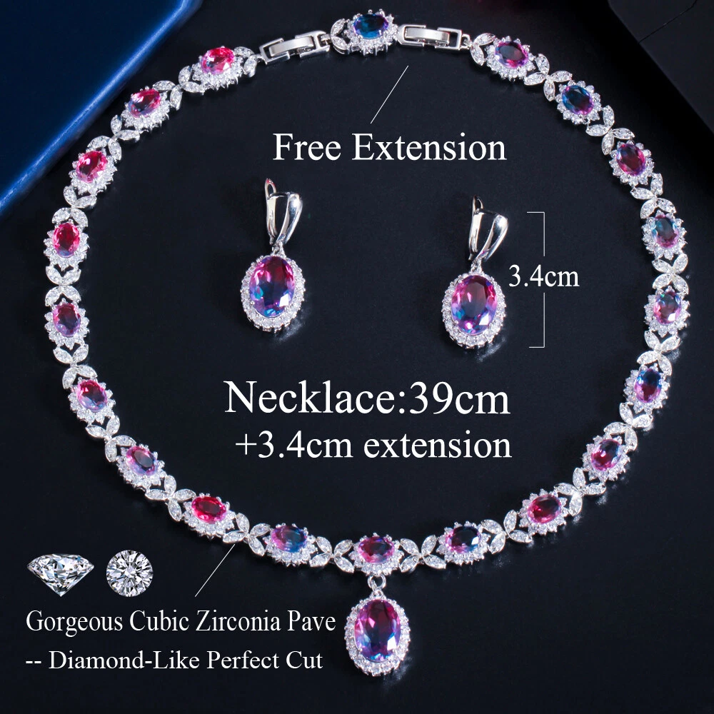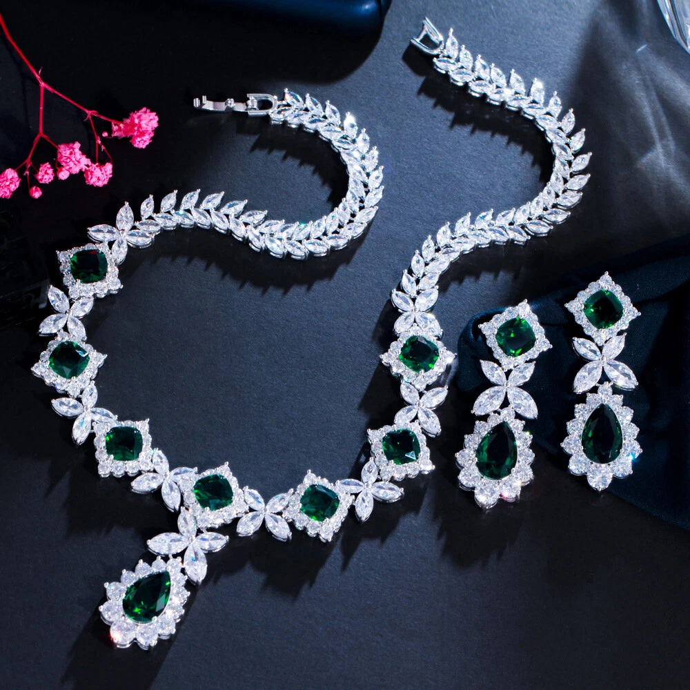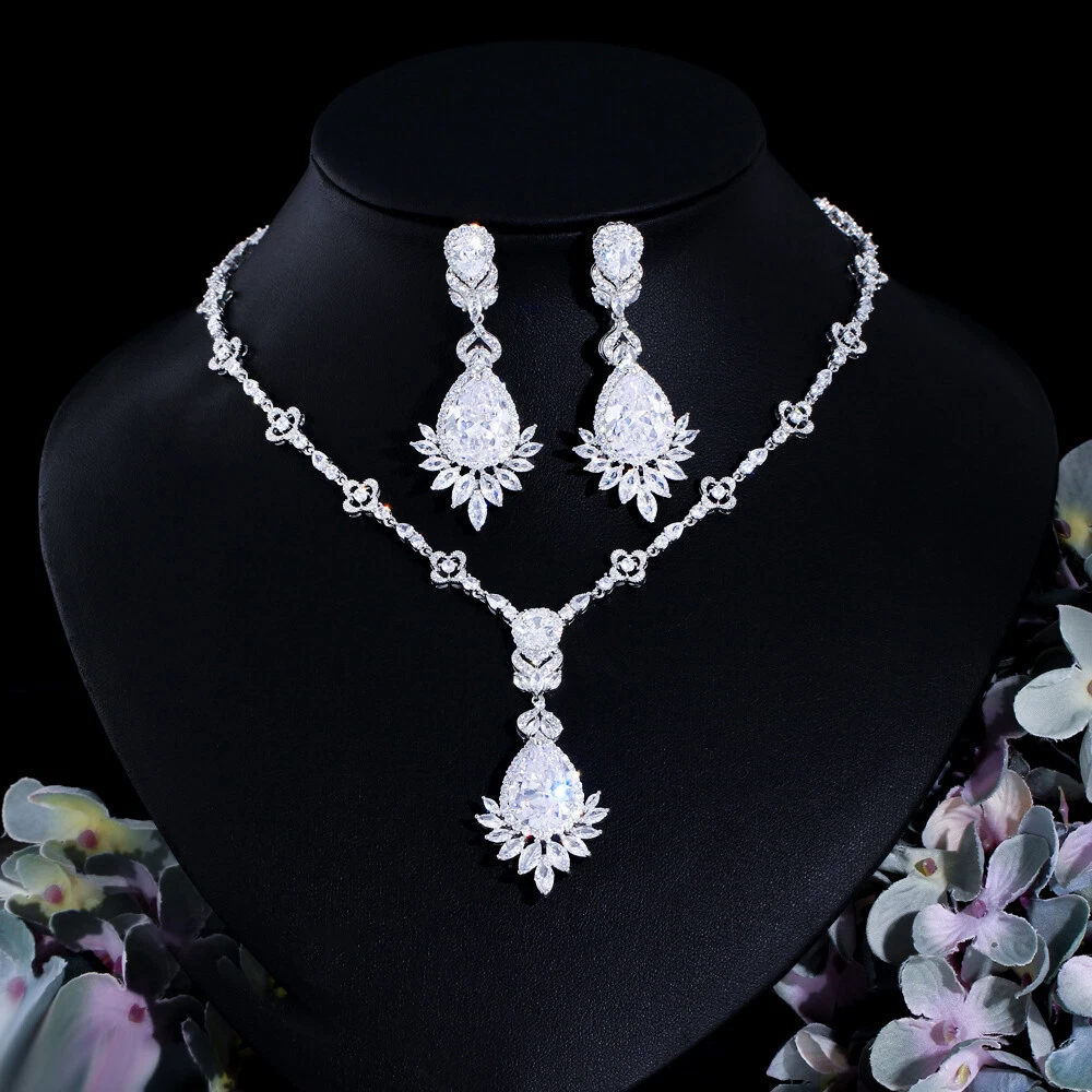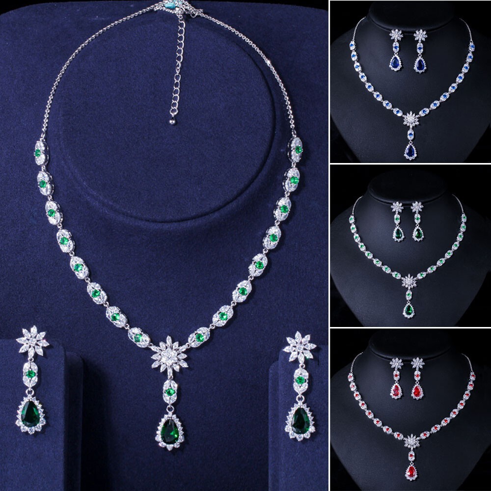 Statement White Crystal CZ Necklace Earrings Set Bridal Wedding Choker Jewelry Specifications: Condition: New Material: Cubic Zirconia Metal: Silver Plated/Yellow Gold Plated Color: White/Green/Blue Features: 1. CZ Stone Material - Top Level Cubic Zirconia. Excellent Cut Simulated Diamond. Enjoy the dazzling sparkle from cubic zirconia dangle earrings. 2. These Fashion Dangling Earrings are Suitable for Daily Wear. 3. Perfect for Various Occasions: Ideal for Bridal, Wedding, Prom, Pageant, Bridesmaids, Parties, Proms, Homecoming, Black Tie Formal Affairs, Holidays and Special Occasions. 4. A Perfect Jewelry Gift for Women on Valentine's day, Mother's Day, Christmas, Wedding , Anniversary, Graduation, Birthday. Package Includes: 1 Pair of Earrings 1 Pcs Necklace Payment Delivery details Terms of sales & Feedbacks About us & Contact us Our commitment Payment 1. We only ship item to your Ebay verified address . Please Make sure all address are the same 2.Please leave note in ebay when making the payment if you have any special request (colors/size). Delivery details We only send items to the registered eBay address.Items will be shipped within 2 business days from the date payment is received (not include public holiday and weekend) . As per eBay regulations, import duties, taxes, and customs charges are the buyer's responsibility. Please check with your country's customs office to determine what these additional costs may be prior to bidding or buying. Terms of sales & Feedbacks After-Sale Please contact us to request a return/replace/refund authorization .It will be best if you use ebay message to contact me. 1, Return and replacement request is available only the requests within 30 days after parcel received. 2, Returning the item as the same condition as received. Situation and solution Defectives ---Please contact us and provide a photo of the defective part. After situation confirmed,we will offer you refund/return/replacement according to the situation Not as Described ---Please contact us and provide a photo of the wrong part. After situation confirmed,we will offer you refund/return/replacement according to the situation Not Received ---Please undersatnding shipping on the way was out of our control ,because of the busy shipping season,holidays,bad weather or force majeure etc. It may be delay for days. But if it took too much time and not deliveried, Please message me, I will offer you solution for it. Feedbacks 1. If you are satisfied with our service, please leave us a + Good feedback and rate the details of the transaction (DSR) with a. . When you rate the shipping time part please take international transit into consideration.] Your recognition will make us more confident to develop business and serve you better. 2. Please contact us first if you have any problem with the items,we will solve it in time ! 3. Please do not leave Neutral or Negative Feedback before you contact us, Thanks For Your Business ! About us & Contact us Working time: Chinese time(Eastern eight zones):Monday to Friday ,9:00 am to 6:00 pm. We do not work on chinese legal holiday. Message reply: We will reply all messages within 24 hours of business time. Please contact us via ebay message, it was the best way for both you and us to solve problems. Any questions or anything you need, please feel free to contact us. Our commitment 1.Wholesale price will be offered to you if you need in bulk ! 2.About Size