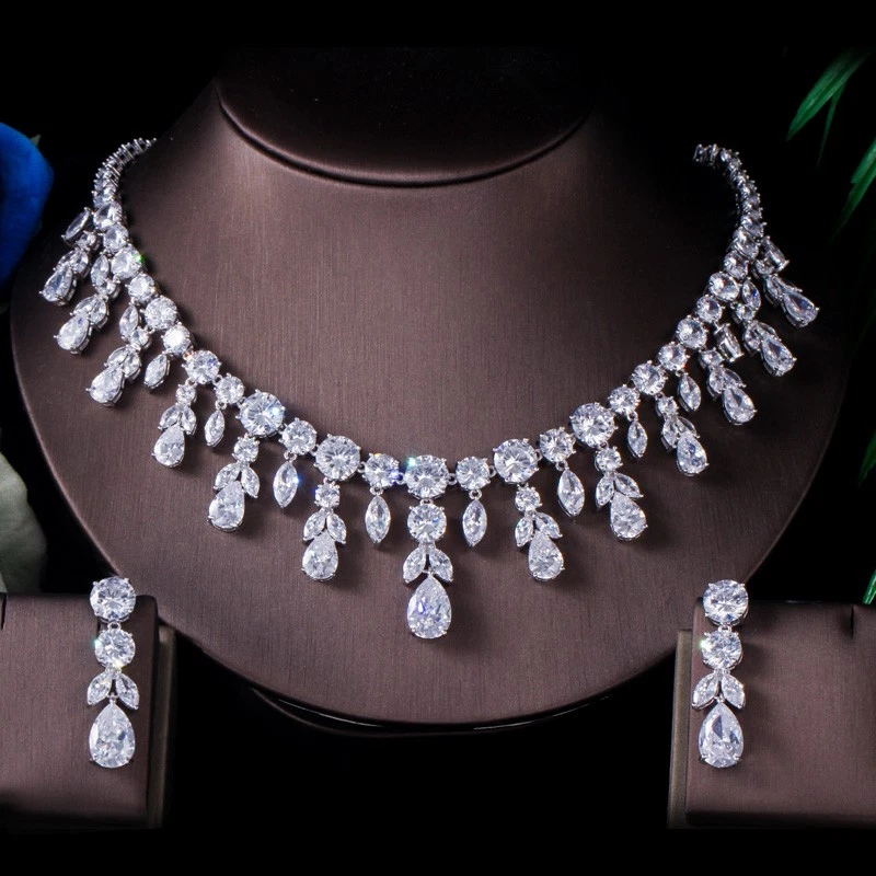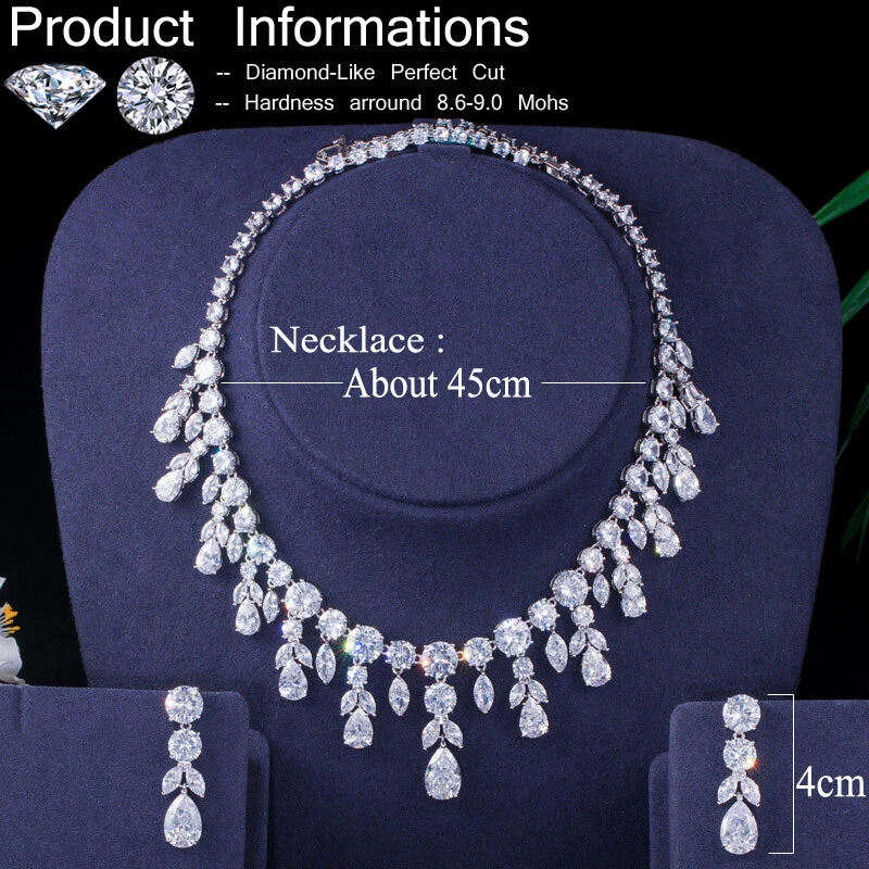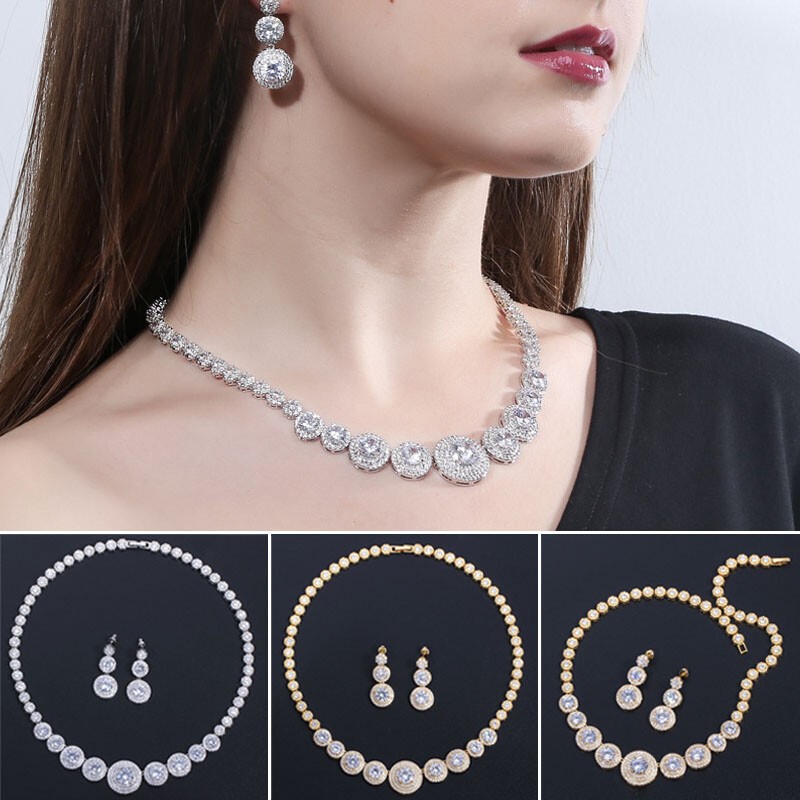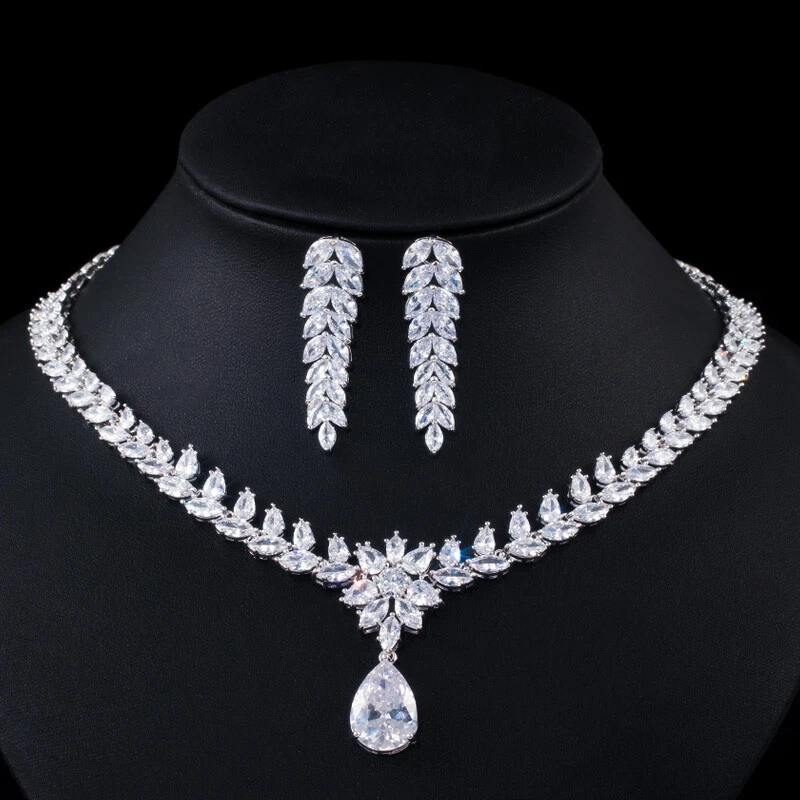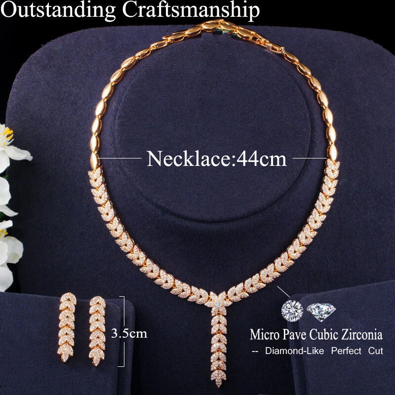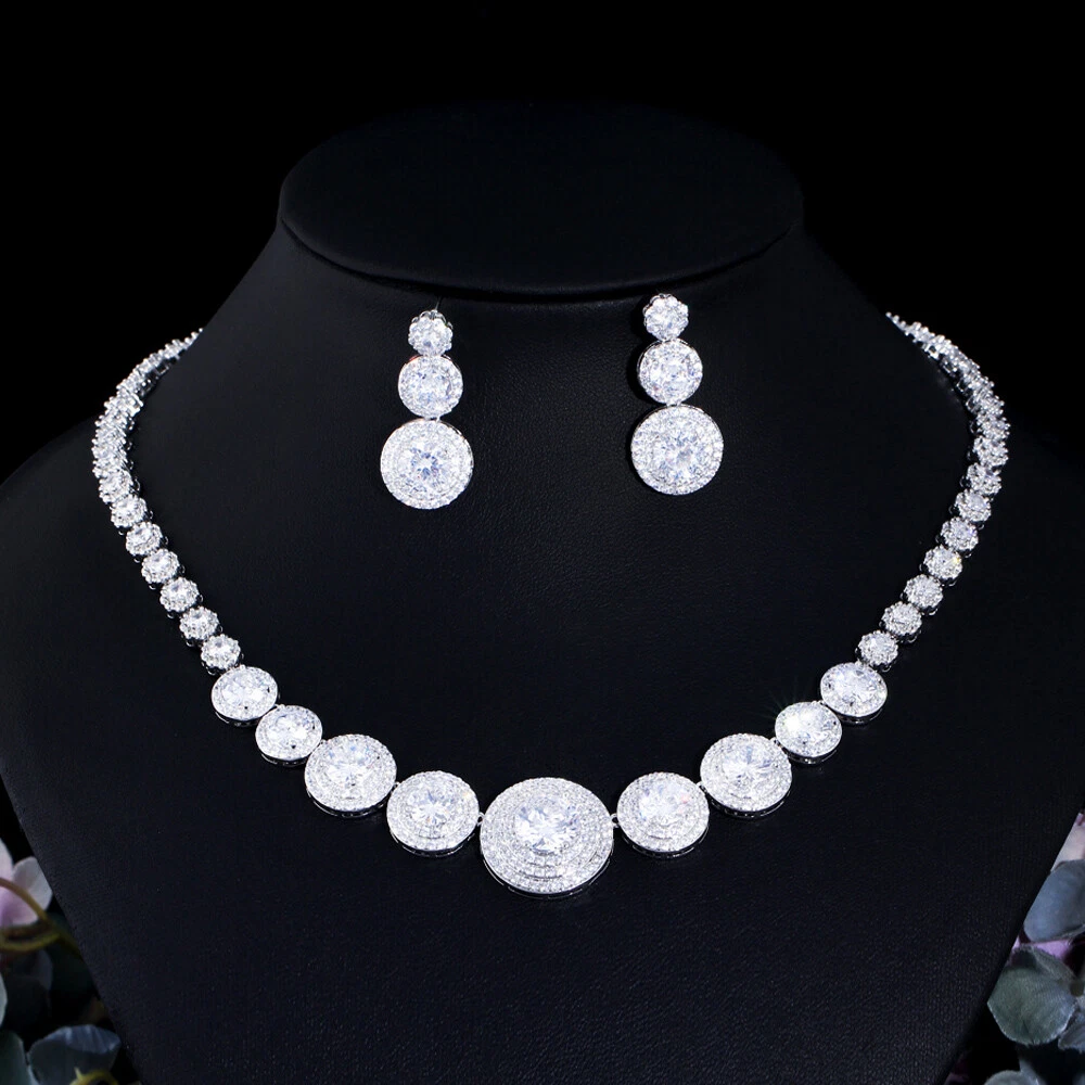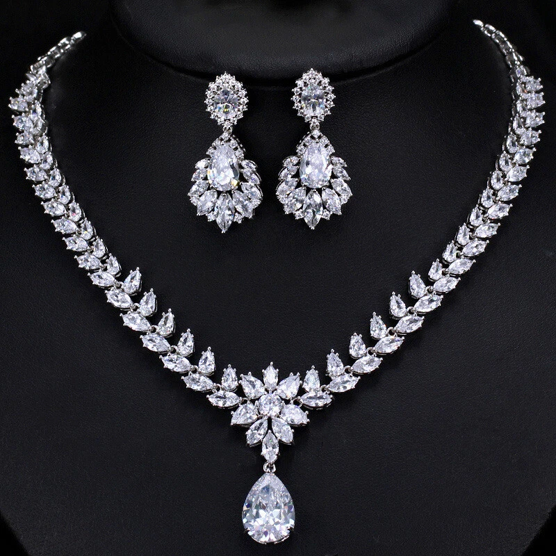 Statement White Crystal CZ Necklace Earrings Set Bridal Wedding Choker Jewelry Specifications: Condition: New Material: Cubic Zirconia Metal: Silver Plated/Yellow Gold Plated Color: White/Green/Blue Features: 1. CZ Stone Material - Top Level Cubic Zirconia. Excellent Cut Simulated Diamond. Enjoy the dazzling sparkle from cubic zirconia dangle earrings. 2. These Fashion Dangling Earrings are Suitable for Daily Wear. 3. Perfect for Various Occasions: Ideal for Bridal, Wedding, Prom, Pageant, Bridesmaids, Parties, Proms, Homecoming, Black Tie Formal Affairs, Holidays and Special Occasions. 4. A Perfect Jewelry Gift for Women on Valentine's day, Mother's Day, Christmas, Wedding , Anniversary, Graduation, Birthday. Package Includes: 1 Pair of Earrings 1 Pcs Necklace Payment Delivery details Terms of sales & Feedbacks About us & Contact us Our commitment Payment 1. We only ship item to your Ebay verified address . Please Make sure all address are the same 2.Please leave note in ebay when making the payment if you have any special request (colors/size). Delivery details We only send items to the registered eBay address.Items will be shipped within 2 business days from the date payment is received (not include public holiday and weekend) . As per eBay regulations, import duties, taxes, and customs charges are the buyer's responsibility. Please check with your country's customs office to determine what these additional costs may be prior to bidding or buying. Terms of sales & Feedbacks After-Sale Please contact us to request a return/replace/refund authorization .It will be best if you use ebay message to contact me. 1, Return and replacement request is available only the requests within 30 days after parcel received. 2, Returning the item as the same condition as received. Situation and solution Defectives ---Please contact us and provide a photo of the defective part. After situation confirmed,we will offer you refund/return/replacement according to the situation Not as Described ---Please contact us and provide a photo of the wrong part. After situation confirmed,we will offer you refund/return/replacement according to the situation Not Received ---Please undersatnding shipping on the way was out of our control ,because of the busy shipping season,holidays,bad weather or force majeure etc. It may be delay for days. But if it took too much time and not deliveried, Please message me, I will offer you solution for it. Feedbacks 1. If you are satisfied with our service, please leave us a + Good feedback and rate the details of the transaction (DSR) with a. . When you rate the shipping time part please take international transit into consideration.] Your recognition will make us more confident to develop business and serve you better. 2. Please contact us first if you have any problem with the items,we will solve it in time ! 3. Please do not leave Neutral or Negative Feedback before you contact us, Thanks For Your Business ! About us & Contact us Working time: Chinese time(Eastern eight zones):Monday to Friday ,9:00 am to 6:00 pm. We do not work on chinese legal holiday. Message reply: We will reply all messages within 24 hours of business time. Please contact us via ebay message, it was the best way for both you and us to solve problems. Any questions or anything you need, please feel free to contact us. Our commitment 1.Wholesale price will be offered to you if you need in bulk ! 2.About Size