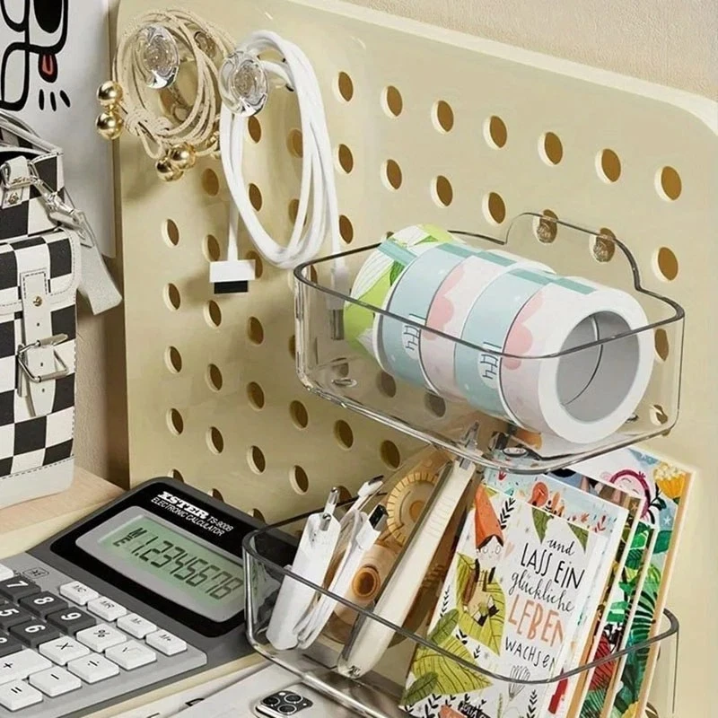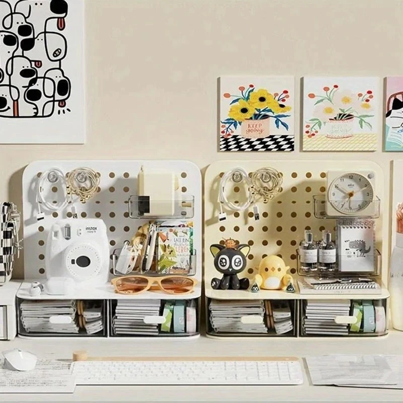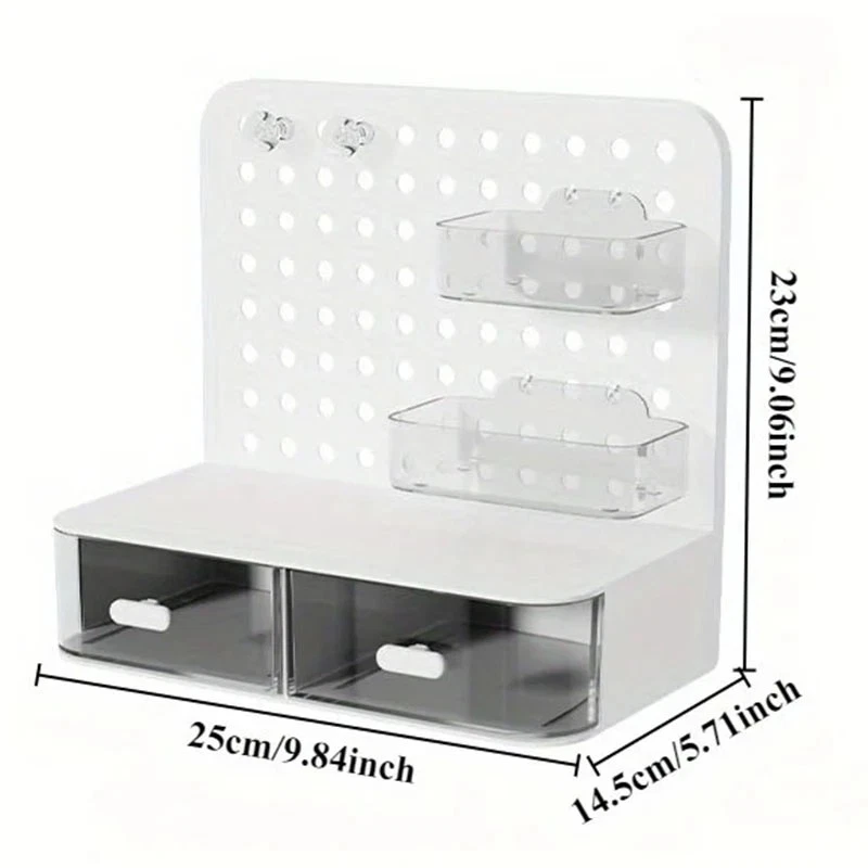 ATTENTION !!! No Extra Fees for US Buyers. Import charges are already included on the price. Stationery Boxes Plastic Storage Board with Drawer Desktop Makeup Organizer Rack Keep your workspace neat and organized with this stylish desktop perforated storage board. Designed with multiple compartments and a drawer, it provides an efficient solution for sorting stationery, pens, makeup, and sundries. The perforated design ensures easy access to your items while maximizing vertical space on your desk. Whether you’re organizing office supplies or storing makeup and small accessories, this versatile organizer helps declutter your desk while adding a modern touch to your space. Compact yet spacious, it’s perfect for both home and office use. Feature: Eco-Friendly:With a 105℃ specification, it ensures safe, eco-conscious storage. Ample Storage: Features a drawer and perforated board design for extensive stationery storage. Material Quality:Crafted from durable plastic, this stationery organizer withstands daily use. Versatile Use:Not just for stationery, it's a versatile makeup storage organizer as well. Space-Saving Design:Compact and perforated, it maximizes desk space without clutter. Specification: Item: Storage Holders & Racks Type: Non-folding Rack Material: Plastic Size: 25x14.5x23cm 24.7x13.5x23cm Color: Transparent Feature: With Drawer Use: Makeup Storage Organizer, Stationery Storage Boxes Pen Sundries Sorting Storage Rack Package Included: 1 x Pc Storage Holders