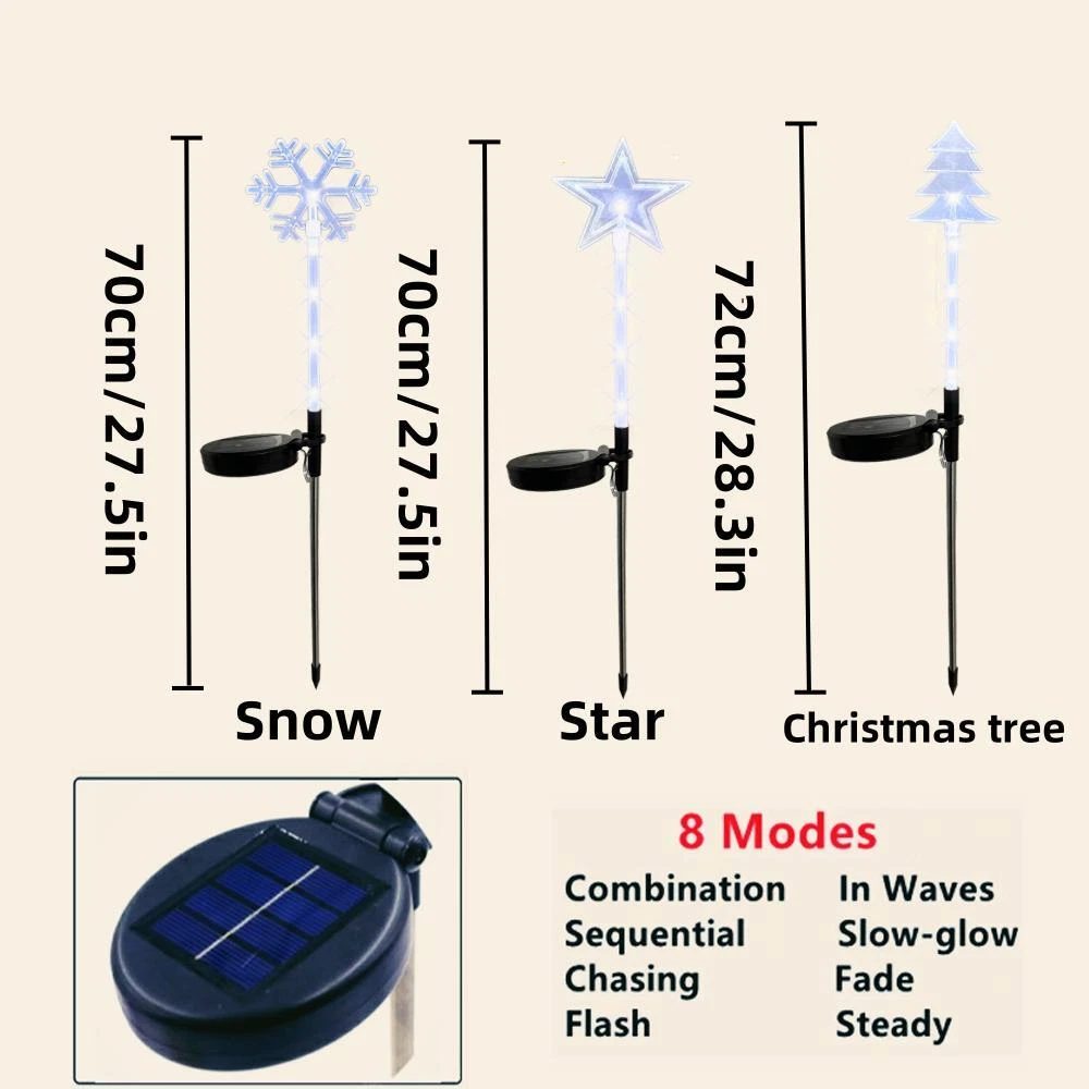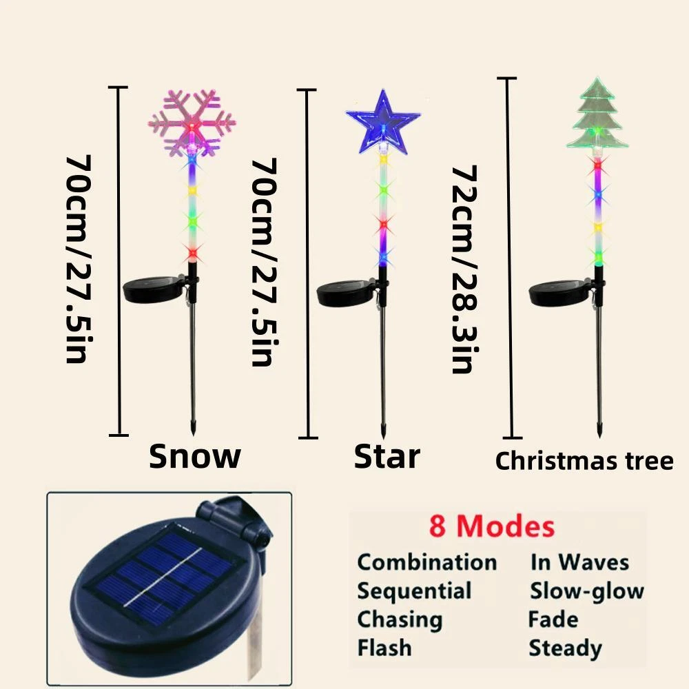 Free and fast shipping , shipping take up 1-7 Business Days 30 Day Return Accepted EASY PAYMENT via PayPal, Credit Card, PayPal Credit, Google Pay... Statue Garden Snow Resin Solar Medium Novelty Modern Multicolor Weatherproof 【Product parameters】 Product name : Solar Star/Snowflake/Christmas tree Light Color : Warm White / Multicolor / White Battery: 600mAh Working mode: light control Charging time: 6-8 hours Working hours: 8-10 hours Material: PVC+stainless steel+ABS Solar Panel: Monocrystalline silicon 2V 160mAh Eco-friendly and energy-saving: The solar panels convert sunlight into electricity to power the lights, saving energy and reducing your carbon footprint. Decorative: The lights simulate the twinkling of star, adding a unique and charming touch to your outdoor space. Versatile: These lights can be used for a variety of occasions, such as garden parties, weddings, or even as a night light. Weather-resistant: The lights are designed to withstand different weather conditions, making them perfect for year-round outdoor use. Easy to install: Simply place the lights in a sunny area and watch them light up at night. No wiring or electricity needed. Long-lasting: Recharge for 6-8 hours during the day.The built-in rechargeable battery provides up to 8-10 hours of illumination on a full charge. REVIEWS The product came very well packaged. I'm very happy. thank you for everything. Seller strongly recommended. This is great! I definitely recommend! Product looks amazing Delivery was fast. Excellent seller, great communication. I advise everyone to buy it!
