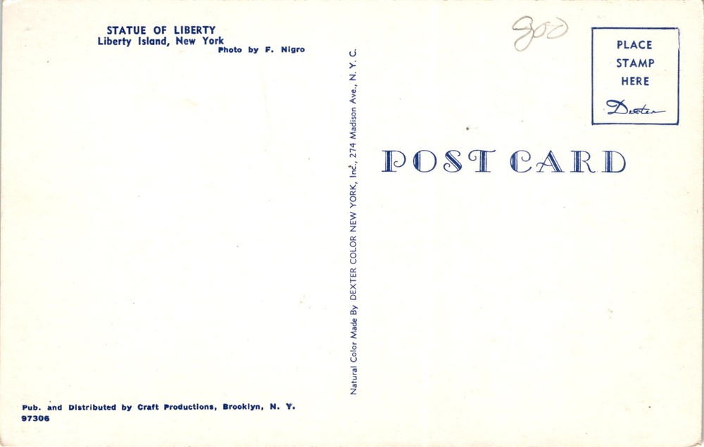 MAKE AN OFFER. THE MORE YOU BUY THE BETTER DEAL I WILL ACCEPT The postcard features a photo of the Statue of Liberty, located on Liberty Island in New York. The statue was a gift from France to the United States and was dedicated on October 28, 1886. Designed by French sculptor Frédéric Auguste Bartholdi, the statue is a symbol of freedom and democracy.