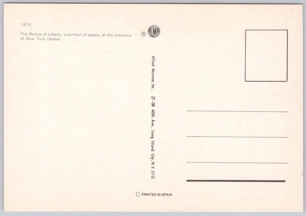 Vintage Statue of Liberty Postcard New York City Harbor Monument