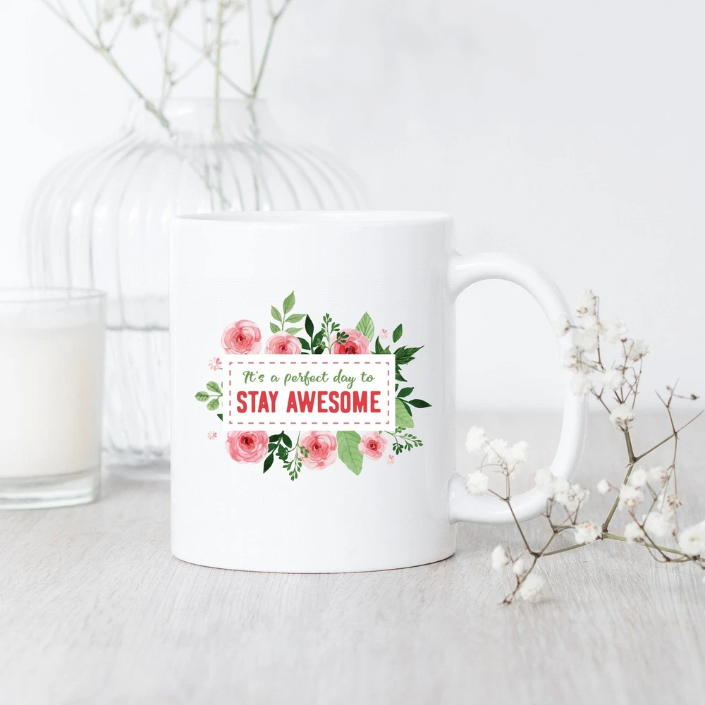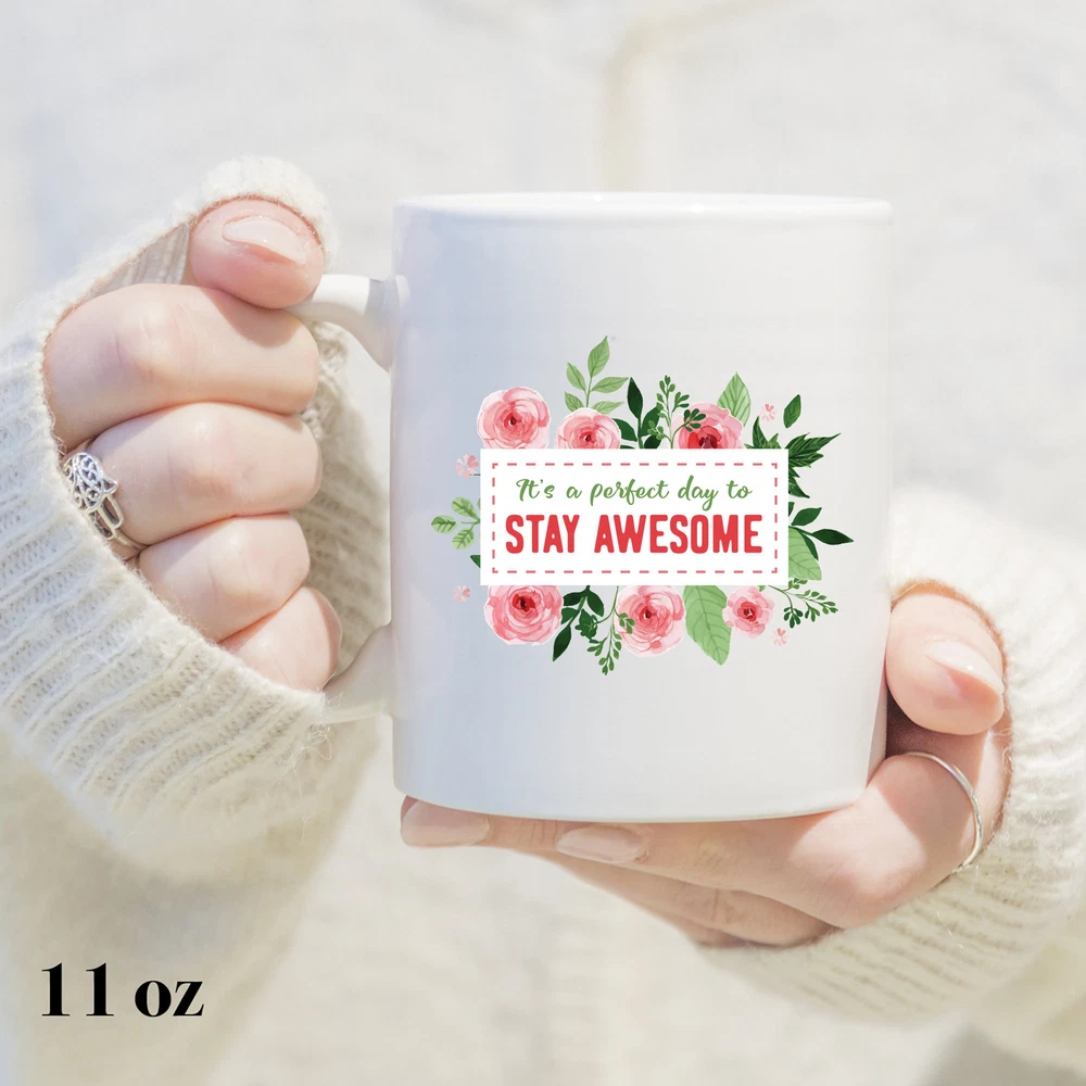 Stay Awesome Mug Motivational Mug Inspirational Gift Good Vibes Mug Positivity Product Details.. This high quality 11oz. ceramic white mug has a premium hard coat that provides crisp and vibrant color reproduction sure to last for years. Perfect for all hot & cold beverages. The highest quality printing possible is used. It will never fade no matter how many times you wash it. Material: 100% Ceramic. Print both sides. Dishwasher and Microwave Safe. High Gloss + Premium White Finish. Printed in the U.S.A. Personalized & Custom. We support personalized and custom mug to add custom, when placing an order, you can add notes to the "order note" in shipping address section. Also you can contact us directly via message. Shipping Info. Ready to ship in 1 to 2 business days, All products are made-to-order and proudly printed in the United States. Shipped by USPS and DHL, You will receive your order in 5-7 days. Replace & Refund. All products are defective during shipping broken, chipped will be replaced free of charge. You are not satisfied with the product, we will refund 100% money to you. If any other issues arise, please do not hesitate to message, we would be more than happy to assist you.