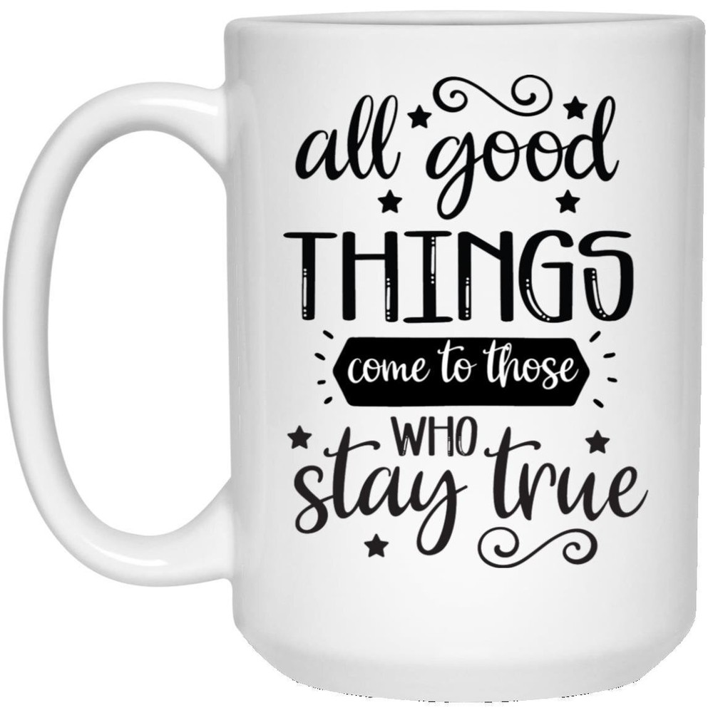 Coffee Mug All Good Things Comes To Those Who Stay True Motivational Gift Product Details.. This high quality 11oz. ceramic white mug has a premium hard coat that provides crisp and vibrant color reproduction sure to last for years. Perfect for all hot & cold beverages. The highest quality printing possible is used. It will never fade no matter how many times you wash it. Material: 100% Ceramic. Print both sides. Dishwasher and Microwave Safe. High Gloss + Premium White Finish. Printed in the U.S.A. Personalized & Custom. We support personalized and custom mug to add custom, when placing an order, you can add notes to the "order note" in shipping address section. Also you can contact us directly via message. Shipping Info. Ready to ship in 1 to 2 business days, All products are made-to-order and proudly printed in the United States. Shipped by USPS and DHL, You will receive your order in 5-7 days. Replace & Refund. All products are defective during shipping broken, chipped will be replaced free of charge. You are not satisfied with the product, we will refund 100% money to you. If any other issues arise, please do not hesitate to message, we would be more than happy to assist you.