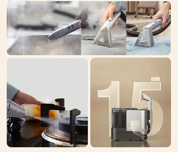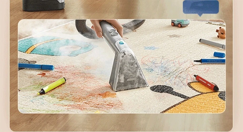Main Feature Fast Drying: The high-temperature steam quick wash mode dries fabrics in just 15 minutes. Multi-Functional: This machine is versatile and can be used for various cleaning tasks, such as sofas, carpets, stovetops, and pet appliances. Smart Control Design: Features an LED interactive visual system for user-friendly operation. 100°C High-Temperature Steam Cleaning: Ensures thorough cleaning and disinfection in one step. High-Temperature Washing: The machine offers 60°C high-temperature washing for effective cleaning. Powerful Suction: With a suction power of 13000Pa, it can deeply clean and remove stubborn stains. 4 Cleaning Modes: It provides four cleaning modes, catering to various cleaning needs, and ensures fine fabric care. Specialized Stain Cleaning: Includes modes for cold wash, hot wash, quick steam wash, and stain dissolving to handle different types of stains. Ultimate Steam Nozzle: The high-pressure steam nozzle expands the cleaning capabilities across different scenarios. Steam Fabric Cleaning Machine Steam washing the whole house makes decontamination at high temperature easier 100°C high temperature steam sterilization, a safe choice for families with maternal and infant pets Industry Advancement Innovator, Steam Fabric Cleaning Machine Multi-Functional for All Scenarios: Sofa/Carpet/Stovetop/Pet Appliances, etc., Covers All Household Chores Thorough Stain Cleaning Across Multiple Temperature Zones: Cold Water and Hot Water Cleaning Modes, Caring for Delicate Fabrics Specialized Steam High-Pressure Nozzle: Dissolves Stains/Removes Grime/De-Ices/De-Stains, One Machine, Multiple Functions 15-Minute Fast Drying for Fabrics: High-Temperature Steam Quick Wash and Rapid Drying Smart Control Design: LED Interactive Visual System 60°C High-Temperature Washing Powerful 13000Pa Suction for Deep Cleaning Stubborn Stains 4 Cleaning Modes Balances Soft and Hard Surfaces, Provides Fine Fabric Care Special Stain Cold Wash/Stubborn Stain Hot Wash/Steam Quick Wash/Steam Stain Dissolving The Ultimate Steam High-Pressure Nozzle by Expands Steam Cleaning Across All Scenarios High-Temperature Steam Quick Wash, Dries Fabrics in 15 Minutes 100°C High-Temperature Steam Cleaning, Complete Cleaning and Disinfection in One Step Cold Water | Hot Water Cleaning Modes Multiple Fine Fabric Care COLDWASH Cold Wash Technology: Suitable for Milk Stains, Blood Stains, Egg Yolk, and Fabrics That Can't Tolerate High Temperatures 60°C High-Temperature Washing with Powerful 13000Pa Suction for Deep Cleaning Stubborn Stains Why Some Stains Need Cold Water Washing: Stains like Milk and Blood won't set on the fabric when washed with cold water, making cleaning easier. Why Some Stains Need Hot Water Washing: Stubborn and oily stains can be quickly dissolved with hot water, resulting in a cleaner wash. Precise Stain Removal, Delicate Fabric Care Special Stain Cold Wash Mode: For Stains That Can't Tolerate High Temperatures, Such as Milk Stains, Blood Stains, Urine Stains, Egg Yolk Stains, etc. Stubborn Stain Hot Wash Mode: For Tough Stains, Such as Red Wine Stains, Paint Stains, Soy Sauce Stains, Jam Stains, etc. Steam Quick Wash Mode: For Disinfecting and Removing Dust, Mold on Items like Plush Toys, Pillows, Baby Strollers, etc. Steam Stain Dissolving Mode: For Hard Surface Stains, Such as Stovetop Grease, Range Hood Oil, Faucet Limescale, Glass Stains, etc. High-Temperature Steam Quick Wash for 15-Minute Fast Drying of Fabrics Quickly Drains Dirty Water While Cleaning, Say Goodbye to Long Waits Specialized Steam High-Pressure Nozzle Easily Dissolves Stains Paired with a dedicated nozzle, it directs a large amount of steam directly onto the surface, making oil and dirt stains no longer stubborn, leaving items clean and like new Far More Than Just Fabric Cleaning, It Can Handle Various Cleaning Scenarios Fabric/Sofa/Carpet/Mattress/Curtains Soft Surfaces: Cushions and More Hard Surfaces: Kitchen/Bathroom/Cracks Unlock More Steam Cleaning Scenarios Century-Old Brand, Meticulous Design One-Button Cord Winding: Easy Storage 1.3L Clean Water Tank, 1.1L Dirty Water Tank Separate Dirty Water Tank, Clean Water for Cleaning and Dirty Water Recycling Freely Mobile Swivel Wheels, Follows You Wherever You Clean Product Accessories Machine Main Body Standard Brush Head Specialized Steam High-Pressure Nozzle