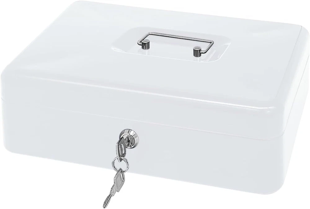 Steel Cash Box with Key Lock, Metal Small Money White- 11.8" x 9.4" x 3.5" Product Details Brand: PACOLO Product Dimensions: 5.9"D x 3.1"W x 4.7"H Lock Type: Key Color: White- 11.8" x 9.4" x 3.5" Material: Alloy Steel, Metal Special Feature: Key Lock Mounting Type: Floor Mount Control Type: Key Control Included Components: Stainless Steel, Alloy Steel, Plastic, Metal Water Resistance Level: Not Water Resistant Chamber Depth: 5.9 Inches Manufacturer: PACOLO Item Weight: 3.3 pounds Country of Origin: China Item model number: Steel Cash Box Special Features: Key Lock Batteries Included?: No Batteries Required?: No Brand: PACOLO Product Dimensions: 5.9"D x 3.1"W x 4.7"H Lock Type: Key Color: White- 11.8" x 9.4" x 3.5" Material: Alloy Steel, Metal Special Feature: Key Lock Mounting Type: Floor Mount Control Type: Key Control Included Components: Stainless Steel, Alloy Steel, Plastic, Metal Water Resistance Level: Not Water Resistant Size And Color:Exterior dimensions: 11.8 inch x 9.4 inch x 3.5 inch,4 colors(Black, White,Pink and Blue) available for you to choose. Key Lock:This cash box has a key lock to keep valuables safe. The key is easy to operate,can open it no problem with one hand. Removable Tray:This cash box has a removable tray with 6 compartments which makes for great coin organization,as well as a layer underneath the tray for storing cash and checks. Highly Quality:This cash boxes is made of high quality steel which is solid and not afraid of knocks and shocks.Suitable to store bills, coins, checks and receipts.The lock box is lightweight with a convenient handle, so you can take it to anywhere and hide it easily. Wide Application:This money box with key is suitable for indoor or outdoor small business,commercial supermarket,store,lockers, cabinets, family use.It also is a perfect gift for Birthday, Mother’s day,Christmas for your friends and family. Suitable to store bills, coins, checks and receipts.