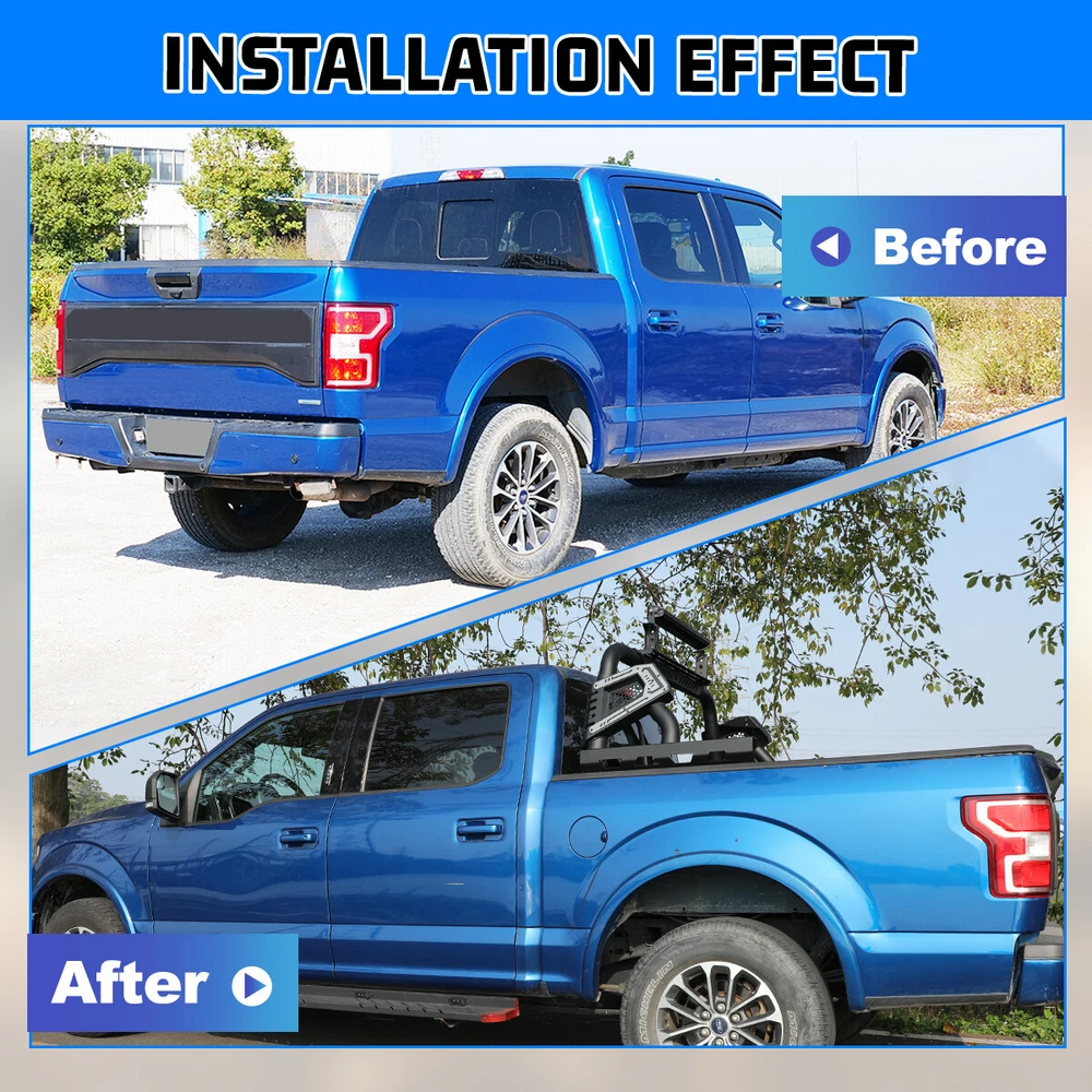 Home Payment Shipping Return Policy About Us Contact Us Feedback Title Other Car Refrigerator Front Bumper Rear Bumper Fender Flares Inner Fenders Side Steps Running Board A-Pillar Light Mount Brackets Headlights For Ford For Dodge For Chevrolet For Toyota For Mitsubishi Taillights For Chevrolet For Toyota For Ford For Jeep For Dodge For Honda For Nissan For Cadillac Fog Lights For Jeep For Dodge For Chrysler For Ford For Toyota For Chevrolet For Nissan For Lexus For GMC For Cadillac For BMW For Mercedes Benz LED Headlights For Ford For Dodge For Chevrolet For Toyota LED Taillights For Toyota For Chevrolet For Ford For Jeep For GMC For Honda For Cadillac LED Fog Lights For Toyota For Ford For Chevrolet For Mercedes Benz Jeep Headlights Tail Lights Fog Lights Refrigerator Bumper Fender Flares Inner Fenders A Pillar Light Mount Brackets Side Step More Chevrolet Headlights Tail Lights Fog Lights Refrigerator Bumper Ford Headlights Tail Lights Fog Lights Refrigerator Bumper Toyota Headlights Tail Lights Fog Lights Refrigerator Bumper Dodge Headlights Tail Lights Fog Lights Refrigerator Bumper GMC Headlights Tail Lights Fog Lights Refrigerator Bumper Similar Type: https://www.ebay.com/itm/405284511827 https://www.ebay.com/itm/405305449637 Product Features: ✴ Compatible with most tri-fold covers mounted on top of the truck bed rails; ✴ Sport bar may limit the opening of the covers. ✴ Silver Decorative Frame: Silver decorative frames can make the roll bar you purchase look more substantial. ✴ LED Light Height Adjustable and Heightening Mounting Bracket: 1. Pod light or Light Bar can be installed. 2. Adjustable position of mounting bracket. 3. Adjustable height range of 4.84-7.6inches. ✴ Mounting Base: 1.Compatible with most retractable, roll-up, and folding bed covers. 2.Bed covers will not be able to fold completely back. 3.Can be secured by punching holes in the bed shoulders or Locked to factory side rails. ✴ Three ways to Install: 1. Bed Rail Mounting Bracket: Locking the base to the factory bed rail. 2. Lock the base to the side rails using the supplied clamping tabs. 3. Holes can be drilled in the rail lip on the side of the truck bed to secure the base. Item Details ✴ Color: Black ✴ Materials: Q235A ✴ Placement on Vehicle: Rear ✴ Installation: Bolt-on, ✴ Attachment Type: Screw-On ✴ Items Included: Mounting Hardware ✴ Surface Finish: Black Powder Coated Steel ✴ Fitment Type: Direct Replacement ✴ Adjustable Width: 62.68~72.52 inches ✴ Adjustable Height : 22.36~27.87 inches ✴ Package Size: 34.65*32.68*11.42 inch ✴ Package Weight: 92.59 lbs Compatibility For 1994-2010 Dodge Ram 1500/2500/3500; For 2011-2025 RAM 1500/2500/3500(Not compatible for models with RamBox) For 1999-2025 Chevy silverado/GMC sierra 1500/2500HD/3500HD For 1997-2025 Ford F-150; For 2017-2025 Ford F-250/350 Super Duty; For 2000-2021 Toyota Tundra; For 2004-2024 Nissan Titan/Titan XD For 1994-2004 Chevrolet S-10/GMC Sonoma; For 2004-2012/2015-2025 Chevy Colorado/GMC Canyon For 1993-2011/2019-2025 Ford Ranger For 2020-2025 Jeep Gladiator ; For 2005-2025 Toyota Tacoma For 2001-2025 Nissan Frontier For 2017-2025 Honda Ridgeline Package Included ✴ 1*Pickup Trucks Universal Adjustable Roll bar Bed Rack ✴ 1*Set of Mounting Accessories Payment Delivery details Terms of sales About us Contact us Payment We accept PayPal, credit card , Apple Pay & Google Pay etc. Delivery details All items will be shipped within 1-3 business days after payment received, we will try our best to ship out as soon as we can, hope for your understanding. Please double confirm your address and contact information, which will help the delivery faster and more accurately. Note :buyers who purchase international products need to pay import tariffs!!! Terms of sales Professional installation is highly recommended. Any problem of the item please feel free to contact us first , please D o Not leave negative feedback before that, or simply return it within 60 Days in original condition. We will resolve it for you ASAP. About us Any questions please do not hesitate to contact us directly by eBay message . We will reply you within 24 hours asap, thanks for your understanding. Contact us Should you have any problem or require any further information please feel free to contact us . If you are satisfied with our product and service, please kindly leave us a positive feedback.