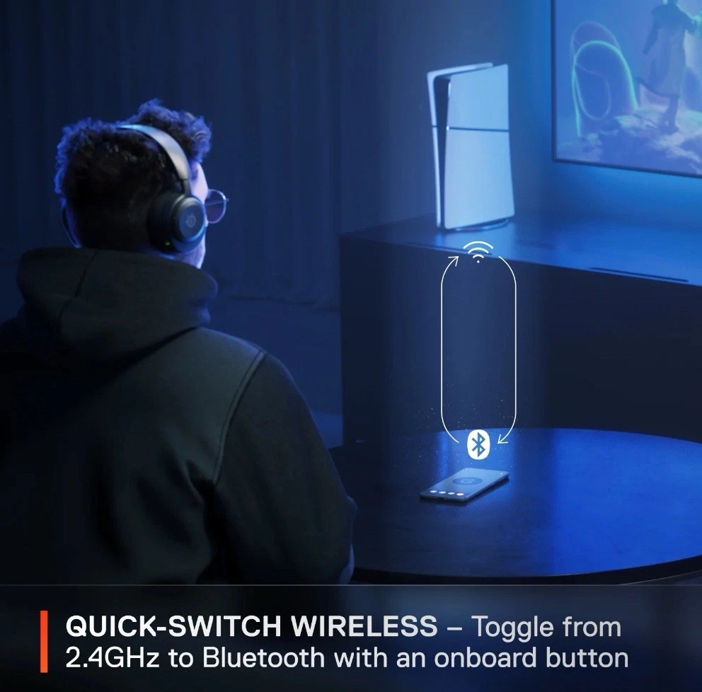 100+ GAME AUDIO PRESETS — Unlock tailored audio presets for top games like GTA V, FIFA, Call of Duty, and more, with the Arctis Nova 5 Companion App 60-HOUR BATTERY — Play longer than ever with the next-gen battery. Go 8 hours a day all week; plus with USB-C Fast Charge get 6 hours of use in just 15 minutes QUICK-SWITCH WIRELESS — Toggle between 2.4GHz gaming and Bluetooth 5.3 with a tap of a button to take a call or listen to media; notification beeps keep you posted on incoming calls while gaming HIGH-FIDELITY AUDIO — Forged from a rare-earth metal, the custom-designed Neodymium Magnetic Drivers create an ultra-detailed soundscape of clear highs, pinpoint mids, and deep bass NEXT-GEN MIC — Our upgraded, fully retractable ClearCast 2.X microphone has 2X the clarity with a high-bandwidth chipset supporting 32KHz/16Bit audio CROSS-PLATFORM — Easily swap between PC, PlayStation, Switch, Meta Quest, phones or tablets with a compact USB-C Dongle ON-EAR CONTROLS — All the buttons you need are right on the headset: Power, mute, volume adjustment, and Quick-Switch to tap into Bluetooth SteelSeries Arctis Nova 5 Wireless Multi-System Gaming Headset — Neodymium Magnetic Drivers — 100+ Audio Presets — 60 HR Battery — 2.4GHz or BT — ClearCast Gen2.X Mic — PC, PS5, PS4, Switch, Mobile