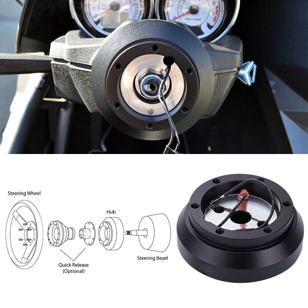 " Features: Made of High Quality Aluminum, Rubber and Stainless Steel Direct Bolt-on Design, Perfectly fits Any Wheel with a 6-Bolt Standard Design Powder-Coated for Durability and Strength Racing Style, for Most Aftermarket Racing Brand Steering Wheel Fits on Ball Bearing Type Quick Release Kit Only Application: For 1990-2017 Nissan 200X For 1989-1998 Nissan 240SX(No Hicas)/S13/S14 For All Nissan 260Z/280Z For 1990-2017 Nissan 300ZX(No Hicas) For 1989-2004 Nissan Skyline(No Hicas) For 1988-1997 Nissan Pickup For 1993-2017 Nissan Altima For 1989-1998 Nissan Maxima For 1987-1990 Nissan Pulsar For 1991-1996 Nissan Sentra For 2004-2011 Nissan Titan For All Nissan 510 610 810 For All Nissan Harbdod For All Infinite G20 Package: 1X Aluminum Steering Wheel Short Hub Adapter "