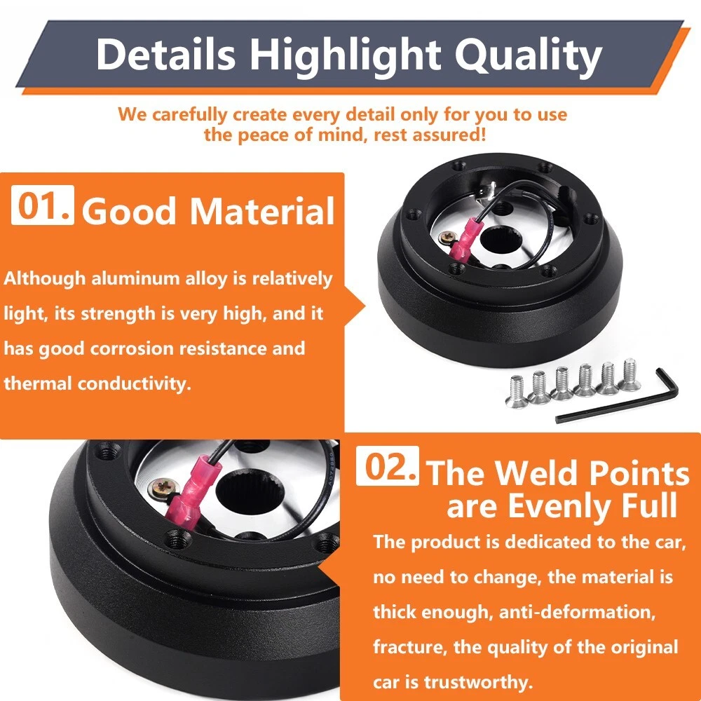 Steering Wheel Short Hub Adapter Boss Kit For Nissan 200X S13 S14 SR20 KA24 140H SPECIFICATIONS: Type: Hub Adapter Color: Black Material: Aluminum FEATURES: 100% Brand New and Never Used or Installed Light Weight & Durable Easy installation. High Quality Material,Fine Workmanship FITMENT: Fit For 1990-2017 Nissan 200X Fit For 1989-1998 Nissan 240SX(No Hicas)/S13/S14 Fit For All Nissan 260Z/280Z Fit For 1990-2017 Nissan 300ZX(No Hicas) Fit For 1989-2004 Nissan Skyline(No Hicas) Fit For 1988-1997 Nissan Pickup Fit For 1993-2017 Nissan Altima Fit For 1989-1998 Nissan Maxima Fit For 1987-1990 Nissan Pulsar Fit For 1991-1996 Nissan Sentra Fit For 2004-2011 Nissan Titan Fit For All Nissan 510 610 810 Fit For All Nissan Harbdod Fit For All Infinite G20 PACKAGE INCLUDE: 1 X Steering Wheel Short Hub Adapter All accessories in the picture are included. NOTE: 1.Please confirm your address is correct 2.Please check the size measurement and the picture carefully before making payment. 3.Please allow 0.5-1 inch difference due to manual measurement. (1 inch=2.54cm) 4.Due to the difference between different monitors, the picture may not reflect the actual color of the item. Please understand, Thank you. 5.We will not accept the return if the item damaged by the buyer's operational errors. SHIPPING INFORMATION PAYMENT WARRANTY ABOUT US CONTACT US SHIPPING INFORMATION We will only ship this item to buyers by Normal Mail, please confirm your address is correct, and if you want to change the delivery address, just feel free to contact us when you purchase. Usually, we will ship the orders out and upload the tracking number within 1-2 business days(Monday to Saturday from 8:30am-5:30pm) after you complete the payment. PAYMENT We will only accept eBay payment. Please pay using eBay payment ONLY within 7 days from the date of transaction be made. WARRANTY Please inspect your order upon receipt.No damage claims will be honored after 14 days of delivery. All item we sold come with 90 days defective warranty from the date. ABOUT US We are a powerful factory producing auto parts,and we have a professional sales and after-sales team that can provide you with excellent products and services. CONTACT US For any reason you want to contact us,We aim at satisfying every visitor, no matter what kind of situation you meet with, we will be right here to serve you. Please contact our team. If you are happy with the transaction with us, leaving us an ALL-5-STAR positive feedback would be greatly appreciated. Have a good shopping.