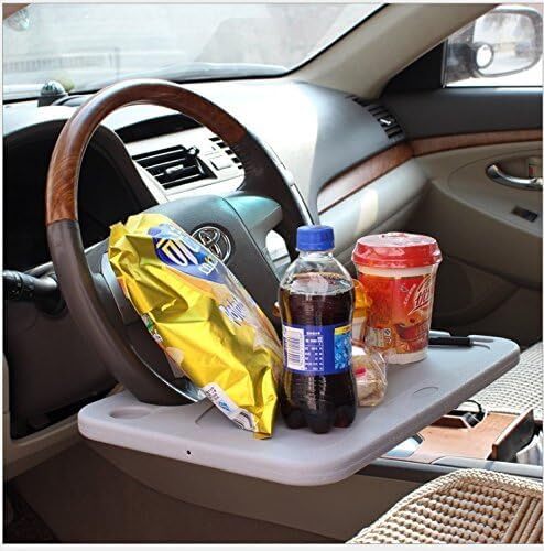 This Steering Wheel Tray is the perfect accessory to have in your car for a quick snack or breakfast or to get a small office while traveling. The Car Tray is slim and lightweight and almost doesn’t take up space when not needed, Just store in the back of the seat pocket. Easy And Convenient To Use. This car wheel steering tray desk can be installed to steering wheel,can be used by driver for eating food or as a laptop、notebook support or desk providing convenient place for notebook grocery food drinks and etc. This 2 Sides Portable Auto Travel Tray works by hooking it up on the steering wheel from the bottom and turn it into a ergonomic designed table. One side is for food and has a deep flat surface for food not to fall off and a deep cup holder, the second side is for work and has a flat table so you can easily write or put your laptop on it, and has a pen slot so it will not fall down and get lost between your seats. This Portable Auto Travel Tray is designed to fit most vehicles steering wheels, Simple And Easy To Install And It’s Very Easy to Keep Clean. The tray is recommended for sales people that are constantly traveling, It’s the perfect travel gift. FASHION AND DURABLE:Fashionably designed out of high quality premium material the Lightter Car Laptop and Food Steering Wheel Tray is strong, durable and long lasting. We also offer a Gray version so that you can choose one that is to the best of your liking. Please remove the Wheel steering cover for install this car tray Product Description How To Install the Steering Wheel Tray Designed with an easy Car-in design, rotate the steering to 180 degrees and install the Steering Wheel desk according to your need. Use Steering Wheel desk only after parking. Do not mount it over the Steering Wheel Cover. Multi-functional Steering Wheel Desk Multi-functional Steering Wheel Desk You can dine in your love car You can Use the Streering desk watch the news and watch TV series on your love car You Can makeup on your car Easy To Work Anytime and Anywhere The Lopto desk will facilitate you to work anytime and anywhere, and make your work more efficient