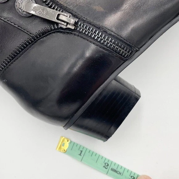 Regarde Le Ciel Stefany 277 Boot Black leather ankles boots with decorative zipper and stud details Inner zipper closure Small block heel measures approximately 1.5" high Size 39 Very good pre-owned condition Small area of discoloration on leather - see last photo for close up
