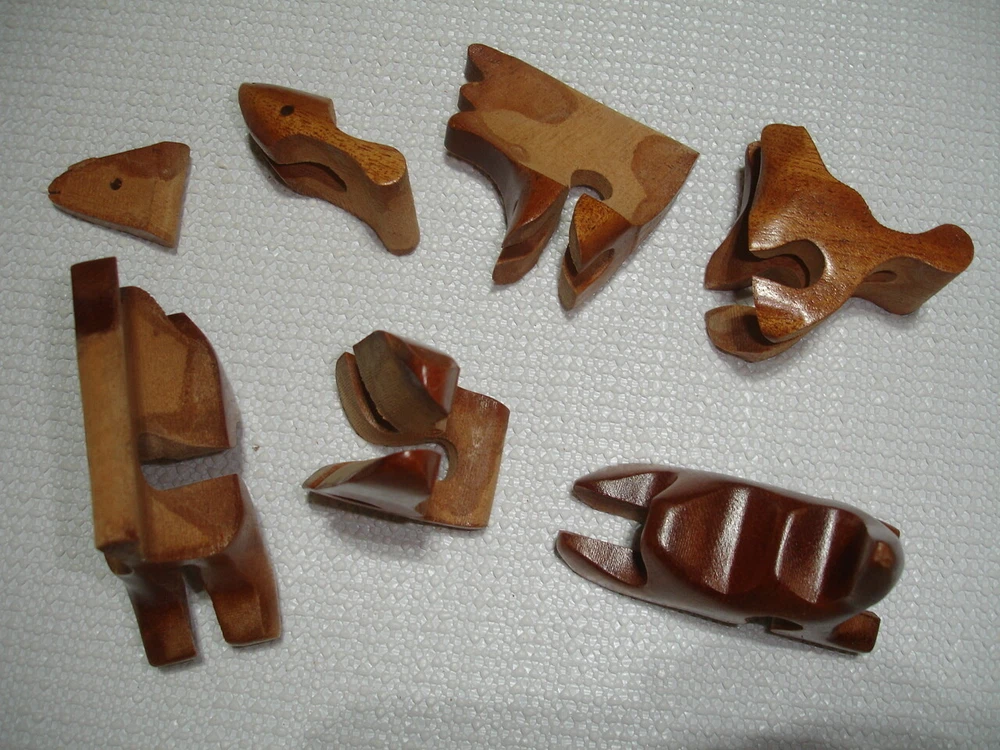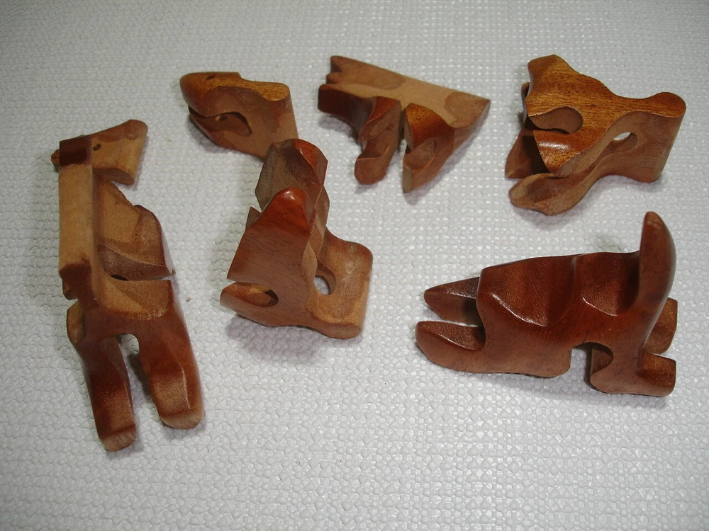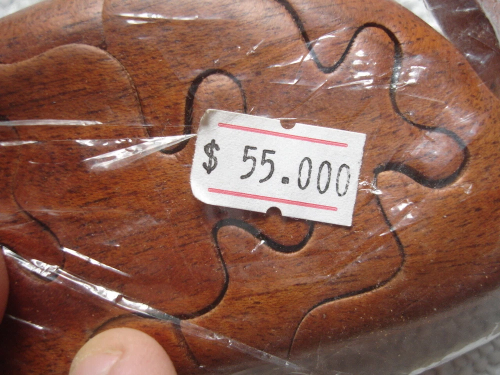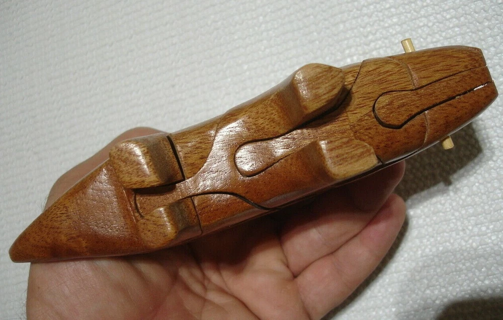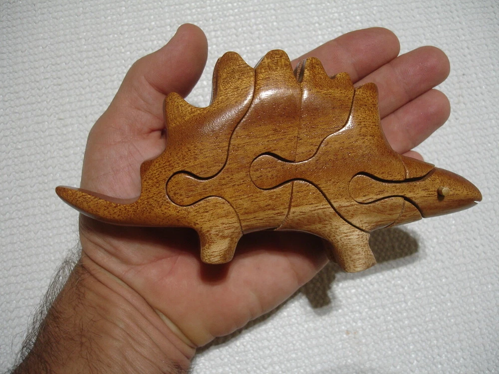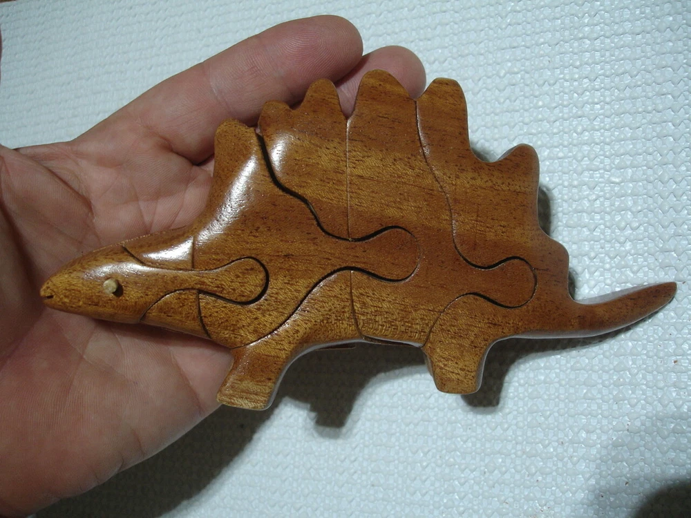 Vintage handmade wood Dinosaur art puzzle from Vietnam (original price tag was $55-$65... last photo shows orig. price tag on one of my other similar puzzles where the tag never fell off the wrapper yet)... perfect for the puzzle-collector or for developing problem solving & motor skills in kids... ... measures about 6.5" long x 3.5" tall x 1.35" thick . 7 quality wood pieces & 1 one little "eyeball" wood peg to lock it all in place... (8 pieces total)... Please include $4.95 domestic s/h. Thanks for stopping in... "For God so loved the world that He gave his one and only Son, that whoever believes in him, shall not perish but have eternal life" Jesus (John chapter three)