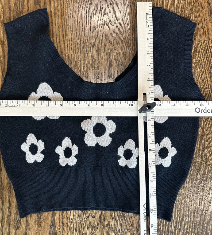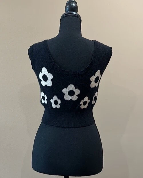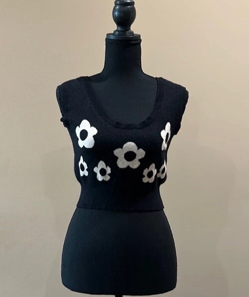 Stella Dallas knit crop Tank size, small, black/white flowers. Polyester blend. Great pre owned condition next day shipping