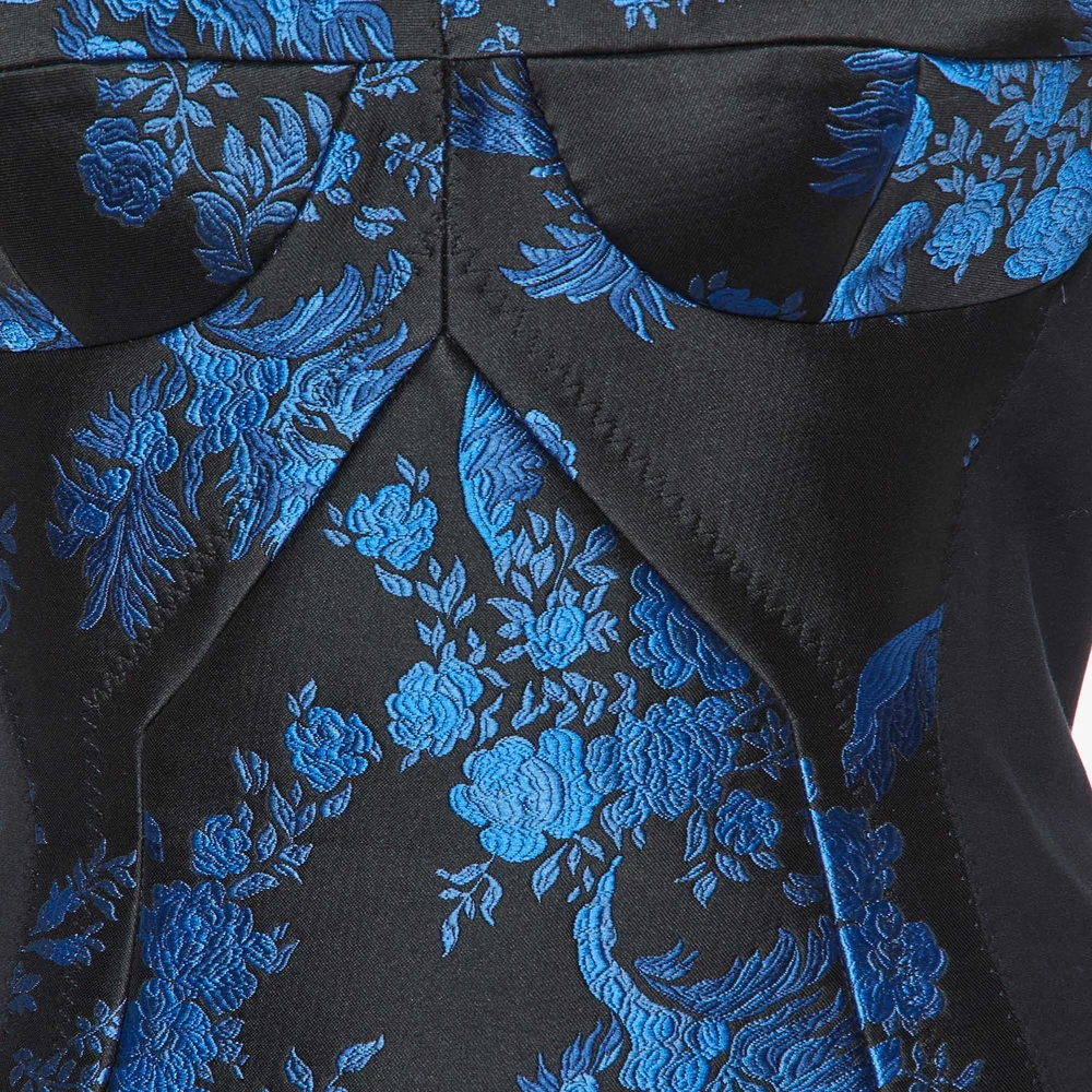Stella McCartney Black Stretch Crepe Floral Jacquard Paneled Bustier Midi Dress