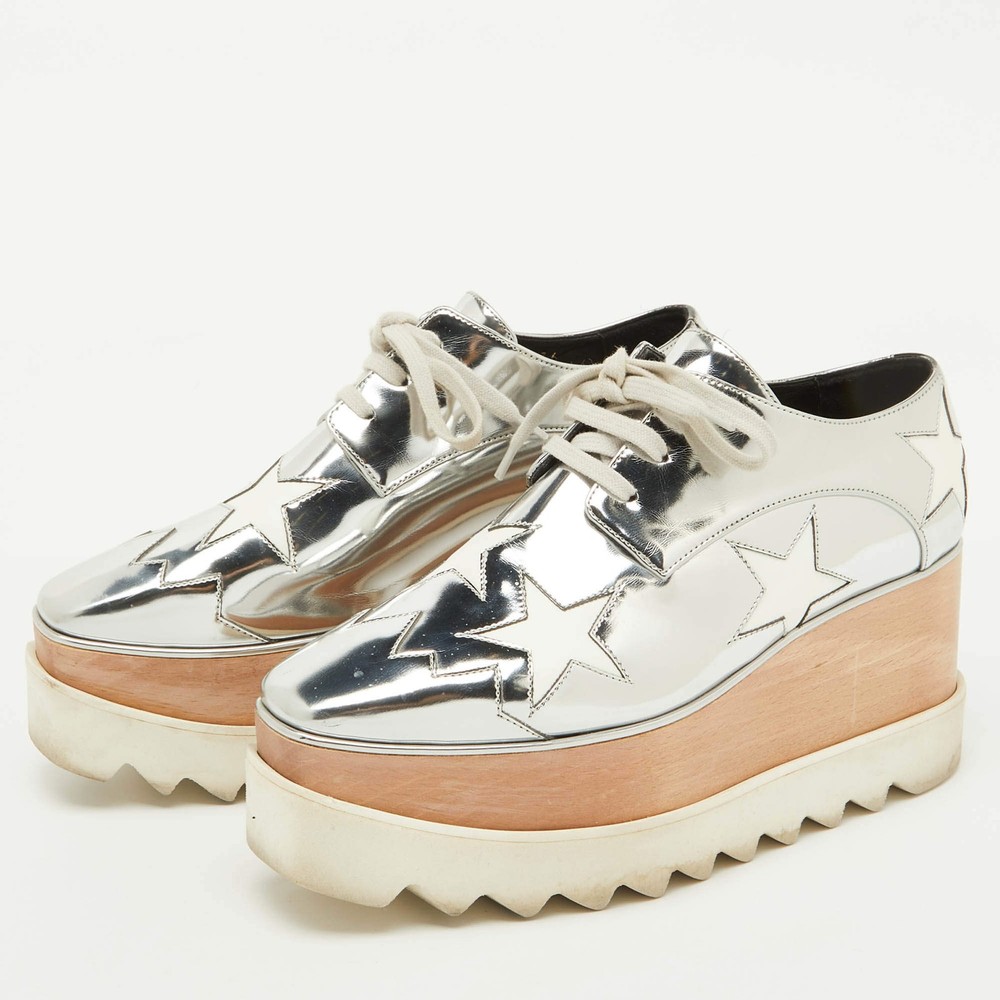 Our eBay Store About Us Contact Us Add to Favorite Sellers Stella McCartney SilverWhite Faux Leather Elyse Star Platform Derby Sneakers These Stella McCartney sneakers are all about making a statement while keeping comfort in check. The platform sole ensures you’ll glide through your day with ease, whether you’re running errands or meeting friends. Product Details Brand Stella McCartney Color Silver Includes The Luxury Closet Packaging Outsole Length 26 cm Outsole Width 8 cm Size 36 Certified by The Luxury Closet This item has gone through a detailed authentication process overseen by our experts. We offer a lifetime guarantee of authenticity on all our items. How We Check The in-house team of experts at The Luxury Closet is highly trained to verify the authenticity and the condition of the luxury products. They ensure that only 100% authentic items are put on sale.The evaluation process is unique with its own mix of assessment criteria and differs according to the category. Each item is evaluated based on the following combination of hallmarks, hardware, stitching, symmetry, material, craftsmanship, stamping, codes, hologram stickers, and packaging. Our authenticators also check if the items have been modified or amended (e.g., aftermarket diamonds, replaced batteries, repaired bags, etc.) International Buyers Import duties, taxes and charges are not included in the item price. These charges are the buyers responsibility. Please check with your country’s customs office to determine what these additional cost will be prior to buying.