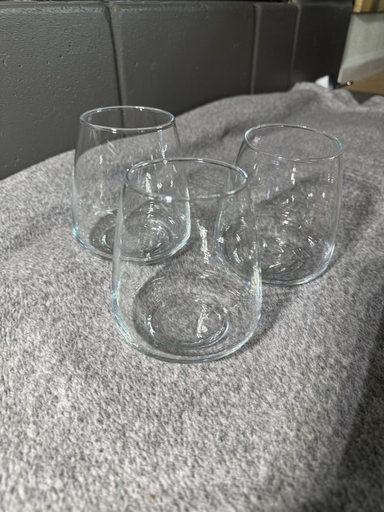 Elevate your drinking experience with these modern, stemless wine glasses. Crafted from high-quality glass material, these clear glasses are perfect for all occasions. The round shape and 3-inch height and width provide a comfortable grip and easy drinking experience. This set includes three stemless wine glasses, making it perfect for sharing with friends and family. The glasses are personalized to suit your style and taste, adding a touch of elegance to your drinkware collection. Impress your guests and enjoy your favorite wine with these stylish and functional glasses.