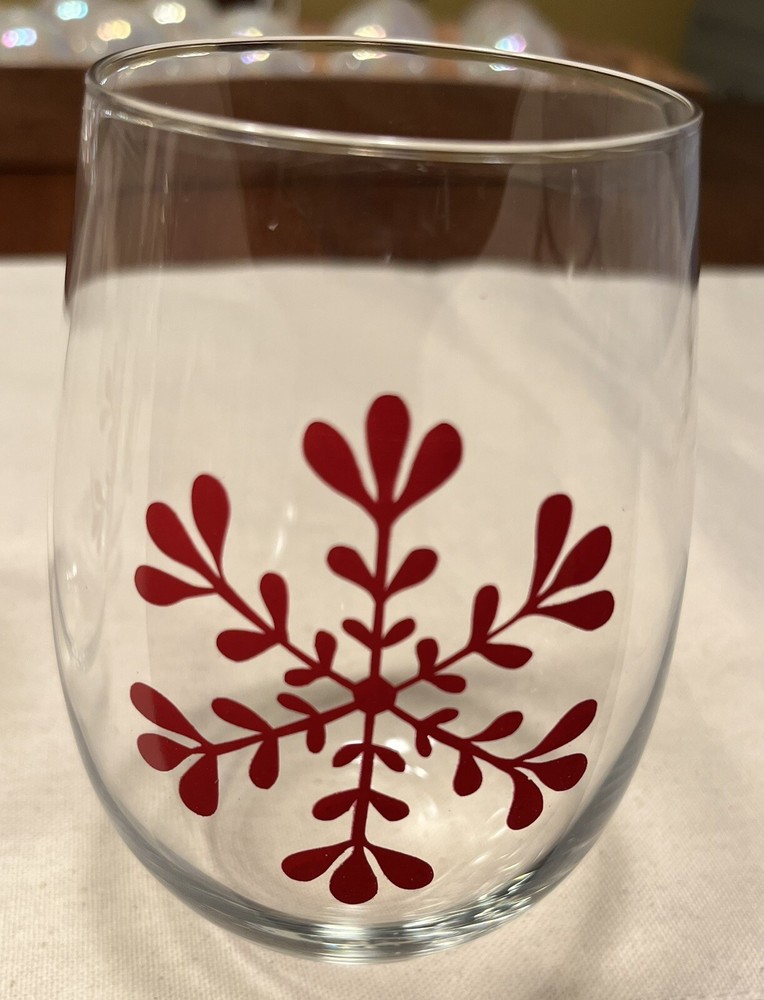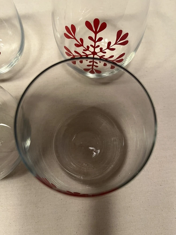 These cute wine glasses are perfect for the holidays. Please note snowflake on 2 glasses are slightly worn. Please see pics for accurate representation of condition. Stored in a smoke free, pet free home.