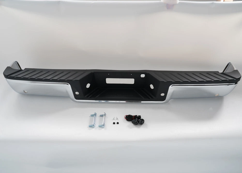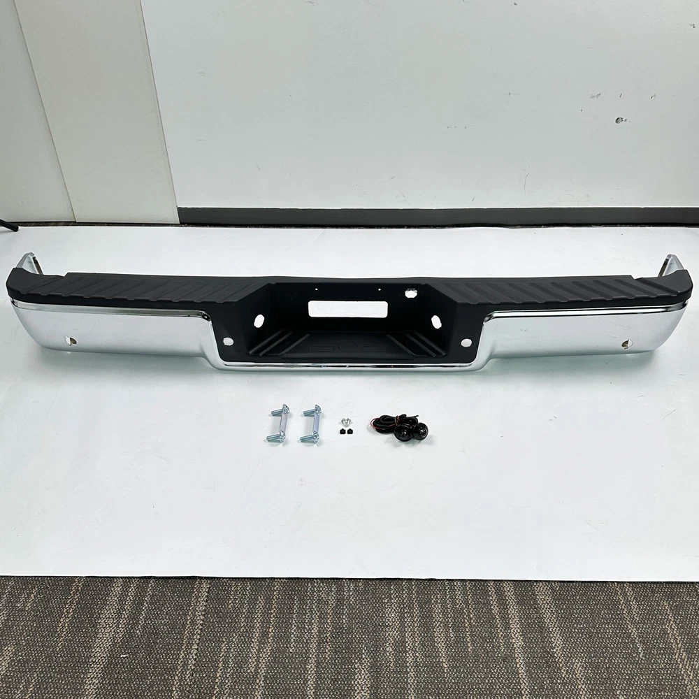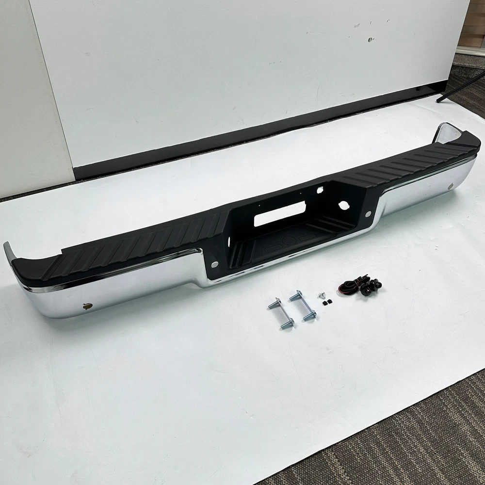 Fitment: For 2005 F-150 King Ranch For Models With Rear Object Sensor Holes For 2004-2005 F-150 (submodel: Lariat, XL) For Models With Rear Object Sensor Holes For 2006 F-150 (submodel: Harley-Davidson Edition, King Ranch, Lariat, XL) For Models With Rear Object Sensor Holes, Production Date To August 8 2005 Specifications: Finish:Chrome Material:Steel Fitment Type:Direct Replacement Type:Step Bumper Parking Aid Sensor Holes:With parking aid sensor holes Partslink Number: FO1103120, FO1103128 Package Content 1x Pickup Rear Bumper 1 x Set of License Plate Lamp with Harness Some Bolts and Screws On Dec 29, 2024 at 18:22:03 PST, seller added the following information: On Dec 29, 2024 at 20:11:59 PST, seller added the following information: