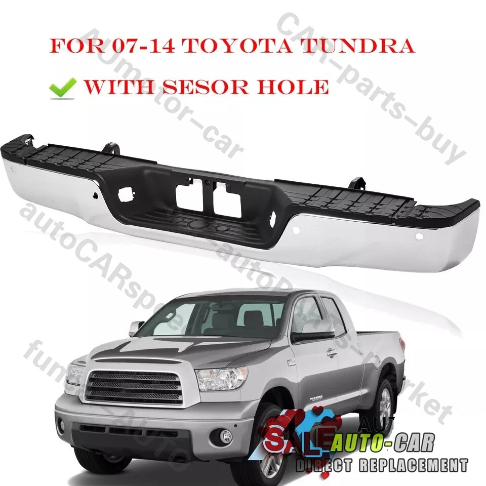 Fitment: For 2010,2013 Toyota Tundra Platinum For 2007-2011,2013 Toyota Tundra SR5 For 2007-2013 Toyota Tundra (submodel: Base, Limited) For Models With Park Assist Item Specifications: Color: Chorme Material: Carbon Steel Type: Bumper Assembly Placement on Vehicle: Rear Fitment Type: Direct Replacement Package Include: 1* Step Bumper W/o Product Instruction; On Jul 26, 2024 at 12:52:49 PDT, seller added the following information: On Jan 23, 2025 at 21:49:57 PST, seller added the following information: