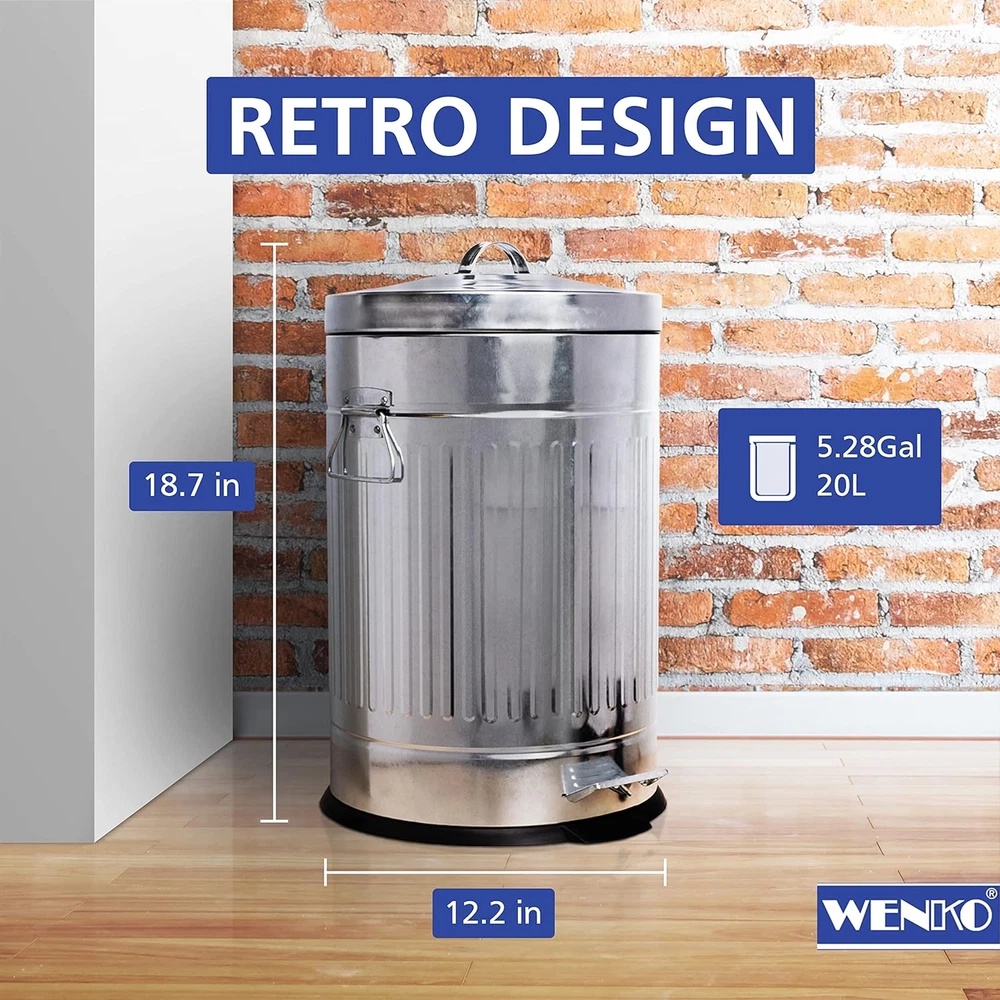 Store New Arrivals Add to Favorite View Feedback Contact Step Trash Can with Lid and Pedal, Retro Metal Garbage Bin, for Bathroom, Kitchen, Office, Soft Close, 5 Gallon, 12.2 X 18.7 X 12.2 In, Gray Description Item model number Step Trash Can with Lid and Pedal Room Type Bathroom,Garden,Kitchen,Office Capacity 5.28 Gallons Color Gray Special Feature Quiet Close, Pedal Product Dimensions 12.2 x 12.2 x 18.7 inches; 5.05 Pounds Material Metal Country of Origin China Shape Cylindrical Opening Mechanism Step-On Recommended Uses For Product Bathroom,Kitchen,Office Is Discontinued By Manufacturer No Finish Type Brushed Size 5.28 gal FUNCTIONAL AND PRACTICAL: WENKO's waste bin with lid is easy to use and transport thanks to its multiple features. This trash can has two handles, a handle on the lid, a removable plastic container and a hook for wall mounting HANDS-FREE: The 5 gallon trash can from WENKO includes a pedal which allows you to open it just by using your foot. This way you can dispose of your garbage without having to touch the trash bin and keep your hands clean RETRO DESIGN: This garbage can with lid has a retro design with a mat finish and is ideal for use outdoors or in your garden. Its retro design gives your space an special touch REMOVABLE INNER BUCKET: The metal trash can with lid includes a removable plastic black container with a handle, which facilitates the removal and emptying of the garbage EASY CLOSE: The garbage bin from WENKO has a soft closing mechanism which prevents the lid from hitting the trash can when closing it and guarantees a quiet and gentle closing of the lid. Dimensions 12.2 x 18.7 x 12.2 in A charming 20 liter/5 gallon bin made to look like urban trash cans for a fun accent in the house. The zinc plating mimics the sheet metal perfectly. Two handles allow for easy carrying, and the hook in back allows for easy wall-mounting. The pedal makes opening and closing the bin hands-free and the easy-close mechanism keeps the lid quiet as well. ABOUT US We offer the best prices around on high quality products. Our E-store includes media such as books, movies, music and games while offering electronics, toys, sporting apparel, clothing, tools, general home, garden items and more. SHIPPING We are always working hard to ensure your package arrives as soon as possible. Please understand that some factors like weather, high postal traffic, and the performance of shipping companies are outside of our control. We offer free shipping to the lower 48 states and ship within 2 business days of payment, usually sooner. We do not accept P.O. Boxes. Please provide a physical address. For shipping outside of the continental USA, we only use eBay's Global Shipping Program.The item is shipped to KY and then sent to the rest of the world. International customers are responsible for all duties and taxes. Continue to check out in order to calculate costs for shipping the item to your country. Messages regarding eBay's Global Shipping Program MUST be directed at eBay EXCLUSIVELY. RETURNS We offer a 30-Day Return Policy on items which you are not completely satisfied with. You have the option for a full-refund or an exchange of the item. No returns are available on items shipped outside of the USA. PAYMENT We accept PayPal. CONTACT US This page content is yet to come Please ad us to your favorite seller and visit again later Thank You CUSTOMER SATISFACTION We try our very best to make sure every customer is completely satisfied. If there's a problem, message us! We're happy to help. WE ACCEPT Copyright © 2021 AutoDS. | All Rights Reserved