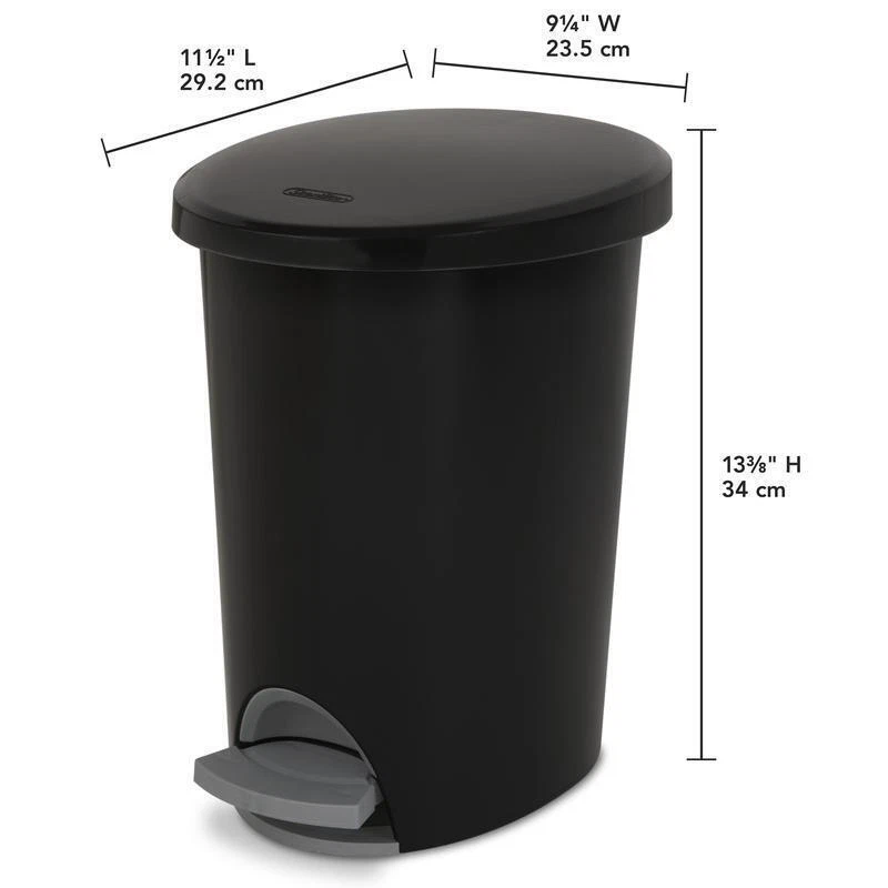 You may also like 3-Burner Gas Stove for Big Outdoor Cooking 30000 BTU 608 Sq in Cooking Space Red 448.86 USD Free shipping Ultra Light Flexible Quarter Inch 100 Ft Air Hose Perfect Roofers Contractors 49.05 USD Free shipping Heavy Duty Carport Canopy Extra Large Portable Car Tent Garage W/Roll-Up Windows 329.17 USD Free shipping Folding Luggage Cart Transport Moving Cart Hand Truck, Black, 75lbs Capacity 33.06 USD Free shipping 6 Piece Plastic 192 In Super Wide Baby Gate Play Yard 2 In 1 Ages 6 24 Months 79.79 USD Free shipping Commercial Lightweight Backpack Baggged Vacuum Cleaner for Carpet & Hard Floors 421.94 USD Free shipping Beveled Mirror Medicine Cabinet 12 X 36 In Frameless Durable Plastic Adjustable 76.12 USD Free shipping Rolling Sewing Machine Storage Transport Tote Triangles W/ Wheels Clear Pockets 63.84 USD Free shipping 12V UltraSafe Portable Lithium Jump Starter Car Battery Booster Pack Powerbank 432.83 USD Free shipping Professional Compact 120V Bench Grinder Sharpenern Garage All Chainsaw Chains 282.14 USD Free shipping Bread Box Steel Fingerprint Proof 21 X 11 X 8 In Handy Large Capacity Durable 77.75 USD Free shipping Grind Rail 55 In Long 3 Step Adjustable Height Extra Stability Practice Skate 73.15 USD Free shipping The Sterilite 2. 6 Gallon Ultra™ StepOn Wastebasket provides convenient, step-on access for hands-free opening while hiding contents from sight. The lid opens easily by stepping on the foot pedal and closes tightly when released. The slim, oval design makes this wastebasket ideal for use in narrow spaces within the bathroom, bedroom or home office and the lid helps contain odors. The removable liner includes a bag holding feature that helps keep a standard plastic shopping bag or 4-gallon trash liner in place when the wastebasket is in use. This Wastebasket has a smooth textured surface that is easy to clean. The overall assembled dimensions of this item are 11 1/2" L x 9 1/4" W x 13 3/8" H. Sterilite Adult Plastic 2. 6 Gal. Ultra™ StepOn Wastebasket Black: Outside Dimensions: 11 1/2" x 9 1/4" x 13 3/8" The slim, oval design makes this 2. 6 Gallon wastebasket ideal for use in narrow spaces Single unit option Classic color to complement all décor - Black The Sterilite 2. 6 Gal Ultra StepOn is the ideal hands free covered wastebasket for small rooms Step-on feature provides hands-free access Slim oval design fits conveniently in narrow spaces Removable bag liner helps keep trash bag in place Accommodates a standard plastic shopping bag or 4-gallon trash liner Ideal for use in the Kitchen, Bathroom, Bedroom, Dorm Room, Mudroom or Basement BPA-free and phthalate-free Made of easy to clean plastic No batteries required Smart Vinyl Permanent Sampler Decals Outdoor Projects Easy Use 5 Sheets 6.69 USD Free shipping 5-Cup Drip Coffee Maker Removable Filter Auto Keep Warm Function Easy Operate 14.7 USD Free shipping 66 Quart Wheeled Underbed Storage Box Latching Lid Clear Organizer Space Saving 29.42 USD Free shipping Aluminum Baking Pans W/ Lids 2 Count Ideal Casseroles Desserts Parties Teal New 15.34 USD Free shipping 15lbs Oak & Hickory Lump Charcoal Hot Clean BBQ Flavor Grills Smokers & Kettles 20.57 USD Free shipping EZ Carry 120 Quart Clear Storage Box W/ Handles Stackable Household Organizer US 21.31 USD Free shipping 21 Gallon Drawstring Trash Bags Unscented Leakproof Puncture Resistant 45 Count 12.03 USD Free shipping 2 Slice Stainless Steel Toaster Adjustable Browning Control Wide Slot Easy Clean 29.44 USD Free shipping 4-in-1 Multi-Function Jar Opener Tabs Can Lids Packaging Blade Prep Solutions US 18.05 USD Free shipping Paper Napkins White 400 Count Big Celebrations Bounty Napkins Family Dinners New 9.39 USD Free shipping 2-Slice Retro Toaster W/ 7 Browning Settings Bagel & Waffle Function in Black US 28.32 USD Free shipping Rechargeable Cordless Handheld Vacuum W/ Attachments USB Charging Lightweight US 29.27 USD Free shipping