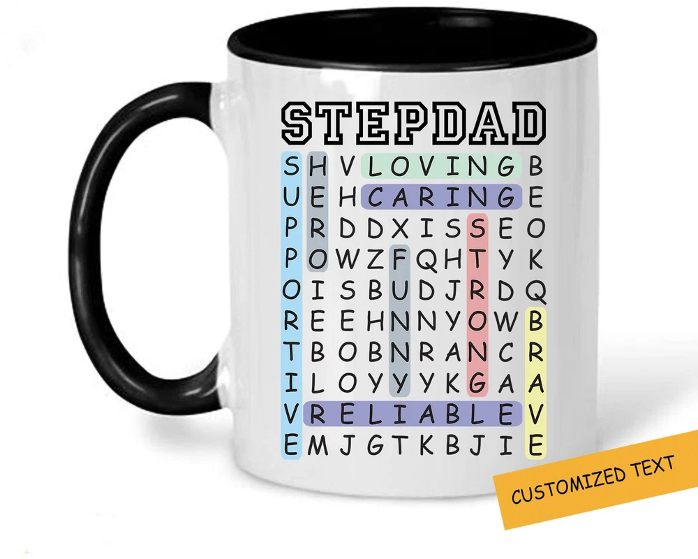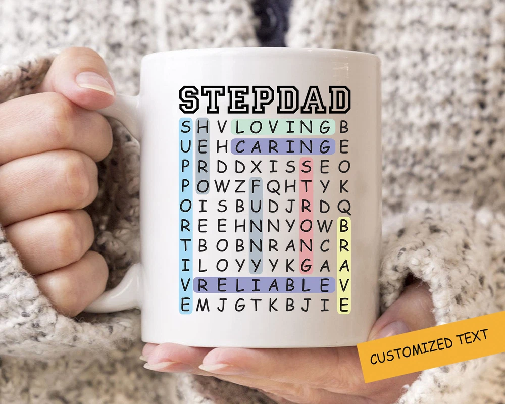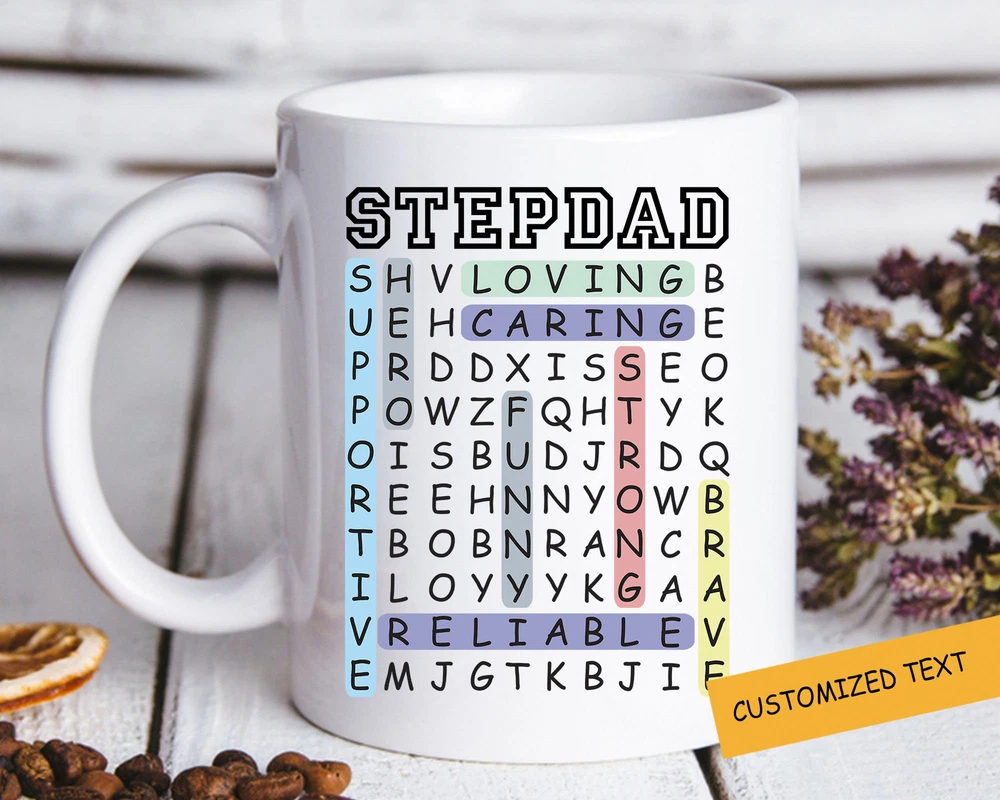 Stepdad Word Search Puzzles Personalized Mug Fathers Day Gift Mug For Bonus Dad Product Details.. This high quality 11oz. ceramic white mug has a premium hard coat that provides crisp and vibrant color reproduction sure to last for years. Perfect for all hot & cold beverages. The highest quality printing possible is used. It will never fade no matter how many times you wash it. Material: 100% Ceramic. Print both sides. Dishwasher and Microwave Safe. High Gloss + Premium White Finish. Printed in the U.S.A. Personalized & Custom. We support personalized and custom mug to add custom, when placing an order, you can add notes to the "order note" in shipping address section. Also you can contact us directly via message. Shipping Info. Ready to ship in 1 to 2 business days, All products are made-to-order and proudly printed in the United States. Shipped by USPS and DHL, You will receive your order in 5-7 days. Replace & Refund. All products are defective during shipping broken, chipped will be replaced free of charge. You are not satisfied with the product, we will refund 100% money to you. If any other issues arise, please do not hesitate to message, we would be more than happy to assist you.