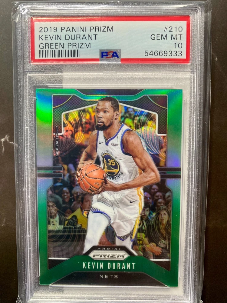 Description: This exceptional lot features three highly sought-after and graded basketball cards of NBA superstars: 2009-10 Rookie Phenoms Stephen Curry Platinum Promo Rookie #/2000 | Graded Gem Mint 10 by PRO Grading | Golden State Warriors: This is a limited edition rookie card of Stephen Curry, graded in pristine condition by PRO Grading. 2019-20 Panini Donruss Optic Giannis Antetokounmpo "T-Minus 3, 2, 1" Purple #8 | PSA 9.5 | Milwaukee Bucks: This card showcases Giannis Antetokounmpo, the reigning NBA MVP, in the highly coveted "T-Minus 3, 2, 1" Purple parallel. 2019-20 Panini Prizm Kevin Durant #210 | Green Prizm /199 | PSA 10 Gem Mint | Brooklyn Nets: This is a limited edition Green Prizm parallel of Kevin Durant, graded Gem Mint 10 by PSA, showcasing his time with the Brooklyn Nets. Shipping: All cards will be shipped securely in their original graded holders with appropriate packaging to ensure safe delivery. Bonus! A surprise bonus card will be included with your purchase! This could be another card from the 2021 Panini Mosaic set, a card from a different player, or a unique insert card. It's a mystery, so you'll have to wait and see!