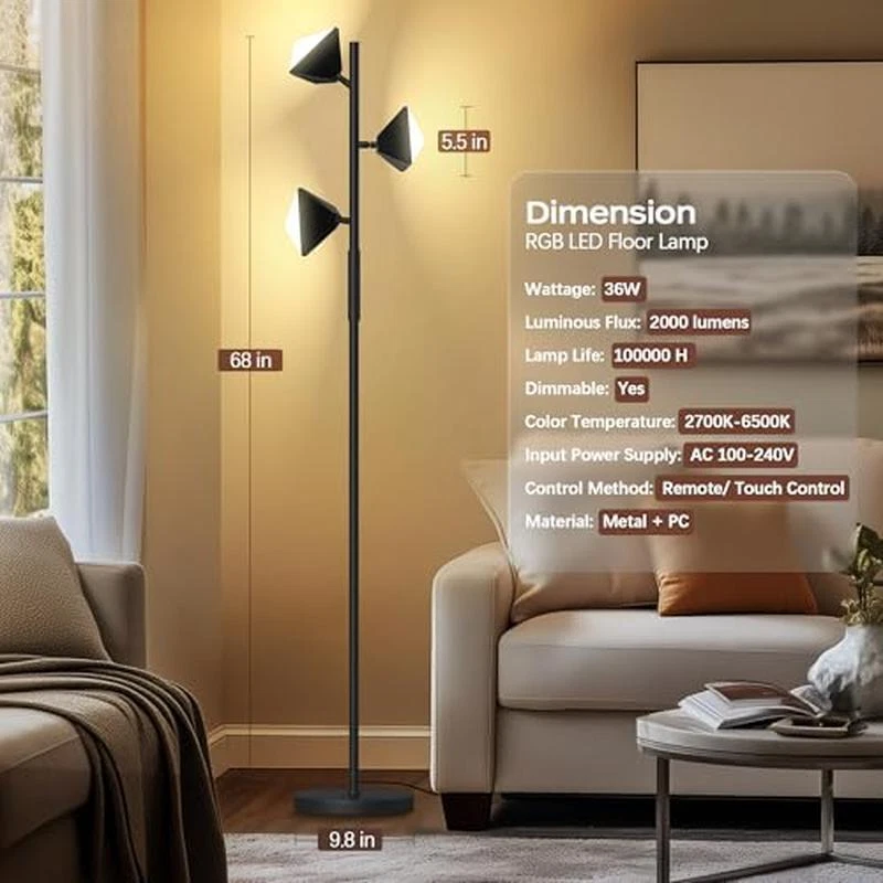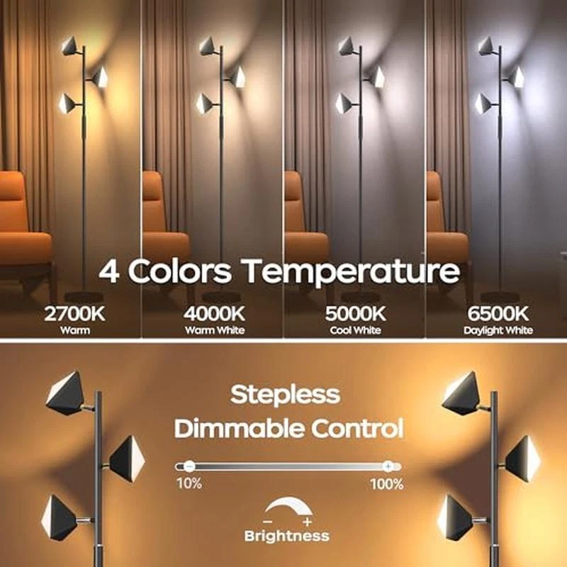 You may also like Adjustable Swing Arm Desk Lamp Home Office Bedroom Lighting Accessories Durable 34.06 USD Free shipping Adjustable LED Floor Lamp Energy Saving Reading Light Modern Design Stable Base 71.48 USD Free shipping LED Floor Lamp Remote Control Dimmable Colors Music Mode Indoor Lighting Durable 35.18 USD Free shipping Full Spectrum LED Floor Lamp Adjustable Brightness Flex Neck Eye Strain Relief 76.94 USD Free shipping Floor Lamp W/ End Table USB Type-C AC Charging 3 Color Temperatures Shelves New 65.98 USD Free shipping Cordless Rechargeable Table Lamp Dimmable LED Indoor Outdoor Lighting 5000mAh US 54.98 USD Free shipping Leather Base Table Lamp Aqua Turquoise White Fabric Shade Push Pin Socket New 49.37 USD 51.97 USD Free shipping 5% off Coastal Table Lamp Starfish Design Ceramic Rope Accent Soft Shade Home New 150.05 USD 157.95 USD Free shipping 5% off Tripod Oak Table Lamp W/ White Fabric Shade Modern Design Home Office Decor New 30.83 USD 32.45 USD Free shipping 5% off About this item Stepless Dimmable Floor Lamp: The LED floor lamp for bedroom has step-less dimming function, from low light to bright light, the brightness can be adjusted at will, whether you are reading, working or resting, you can find the most comfortable brightness and protection you with both eyes, you can freely match different lighting effects according to your personal preferences and needs to create your own personalized light and shadow space Efficient energy saving and safe: this floor lamp adopts advanced LED light source technology, with 2700K warm white light, 4000K natural light, 5000K bright white light and 6500K refreshing white light, Tall standing lamp can switch between four color temperatures with one click, easily adapting to different scenes for you create a comfortable lighting. Our LED lamp has high light efficiency and low energy consumption,After long-term use, it can save you many electricity bills Intelligent remote control operation: this lamp for bedroom in addition to traditional manual adjustment, this floor LED lamp is also equipped with a clever remote control, allowing you to easily control the light switch, brightness, color temperature, color and other parameters. You can enjoy the convenience of smart lighting without getting up 3 Rotatable Light independently, broad lighting: the floor lamp for living room has three independent lamp heads, each of which can be independently rotated and adjusted. Whether the LED standing lamp lights the entire room or focusing light locally, it can be easily achieved to meet your lighting needs Excellent materials and exquisite workmanship: the living room floor lamp body is made of high-quality metal, sturdy, durable, and not easy to deform. The surface has been finely processed, smooth, delicate, and beautiful, floor lamp for bedroom with remote every detail has been carefully polished, showing excellent craftsmanship › product details Finish Type:Polished Base Material:Metal Product Dimensions:9. 8"D x 20"W x 70"H Lamp Type:LED Shade Color:black You may also like Full-Length White Rectangular Mirror 13x49 Hang Over A Door Bedroom Home 12.63 USD 13.3 USD Free shipping 5% off Fiberglass Spinning Fishing Rod Hotcast 4-Ft 6-In 2-Pcs Medium-Light Power Green 11.63 USD 12.24 USD Free shipping 5% off Cooking Wood Chunks for BBQ Smoking Grilling 549 Cubic Inch 31.91 USD 33.59 USD Free shipping 5% off Stoneware Cereal Bowl Microwave Freezer Dishwasher Oven Safe Drip Design New 9.8 USD 10.32 USD Free shipping 5% off 2 lbs 4 oz Butter Powder Survival Camping Food Storage Everyday Home No. 10 Can 30.43 USD 32.03 USD Free shipping 5% off Kids Folding Table 4 Chairs Set Playroom Daycare Indoor Outdoor Activities New 58.05 USD 61.11 USD Free shipping 5% off Chewy Granola Bars Chocolate Chip Dipped Snack Value Pack, 20 Count, 1.1 Oz 10.43 USD 10.98 USD Free shipping 5% off Fast Acting Drain Cleaner 32oz Acid Clog Remover Sink Opener Septic Safe New 22.46 USD 23.64 USD Free shipping 5% off Deviled Egg Keeper Container Storing Fresh Transporting W/ Lid Dishwasher Safe 10.57 USD 11.13 USD Free shipping 5% off Variety Pack Sweet Salty Granola Bars Snacks 24 Count Healthy Protein Fiber New 12.35 USD 13.0 USD Free shipping 5% off Portable Lightweight Camping Chair w/Cup Holder for Folding Lawn Picnic US 16.21 USD 17.06 USD Free shipping 5% off House International Cafe 4 pack Vienna Cafe Style Beverage Mix 9 oz Canister 24.41 USD 25.69 USD Free shipping 5% off