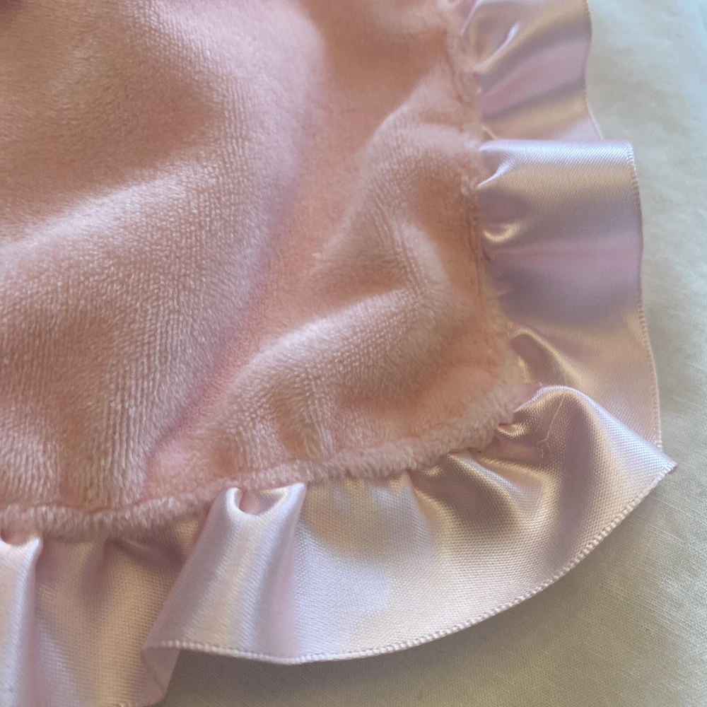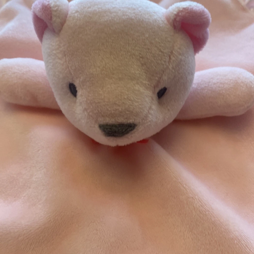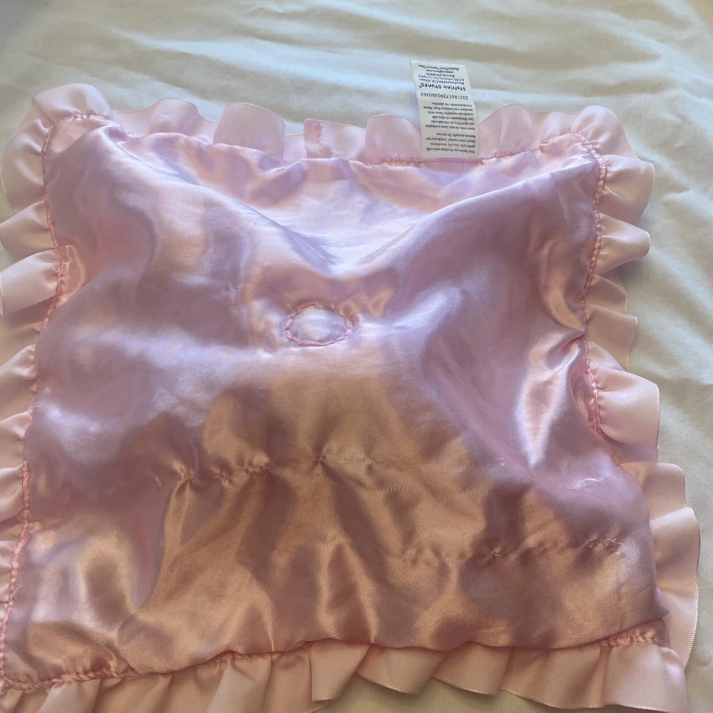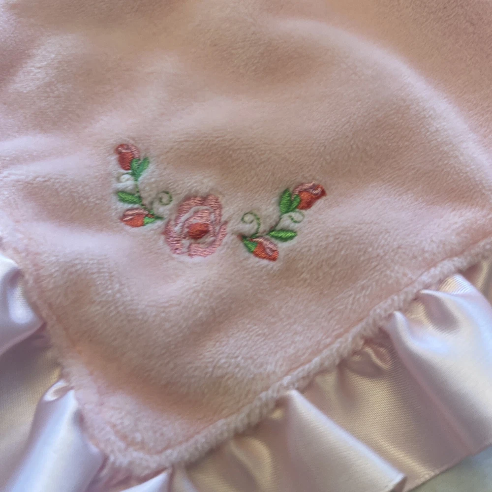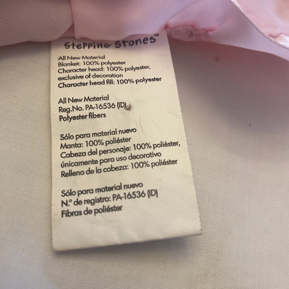 Type:Security BlanketMaterial:PolyesterTheme:Teddy Bear Flowersgtin13:Does not applyUPC:Does not applyBrand:Stepping StonesModel:Stepping StonesColor:PinkGender:GirlsSeller Notes:“Very good condition...does have a pull on the back satin”Size:13" x 13"