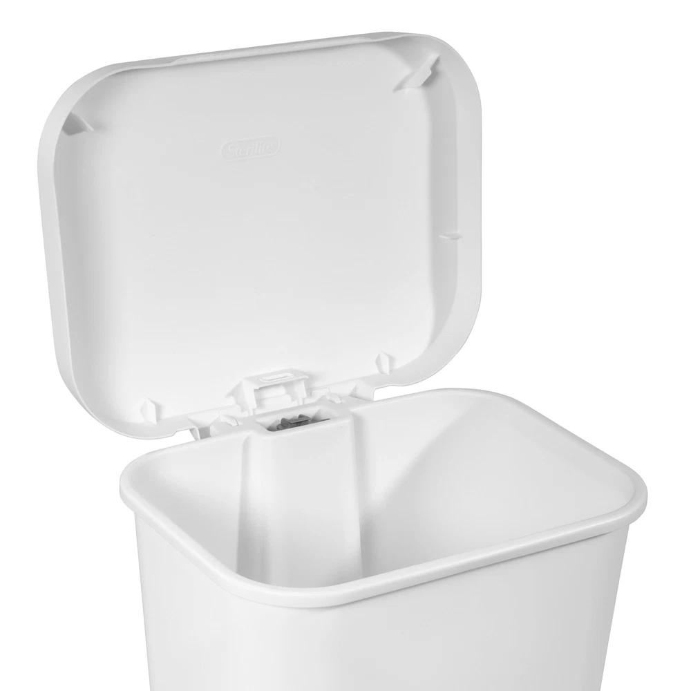 The 11.9 Gallon / 45 Liter StepOn Wastebasket brings a modern aesthetic to a household essential with sleek lines and an attractive easy to clean textured finish. The ribbed foot pedal ensures that the hands-free wastebasket open easily with a slight step. Its space efficient shape fits perfectly against a wall or cabinet in the kitchen or workspace. Changing the trash liner is simple with a wide opening and a lid that stays open while removing and replacing the bag. An oversized lid design hides the trash bag and offers a neat, clean look. A convenient comfort handle on the back of the lid provides an area to lift and transport the wastebasket when needed. The overall assembled dimensions of this item are 16 1/8" L x 13 1/4" W x 24 1/2" H. On Feb 19, 2025 at 01:31:34 PST, seller added the following information: