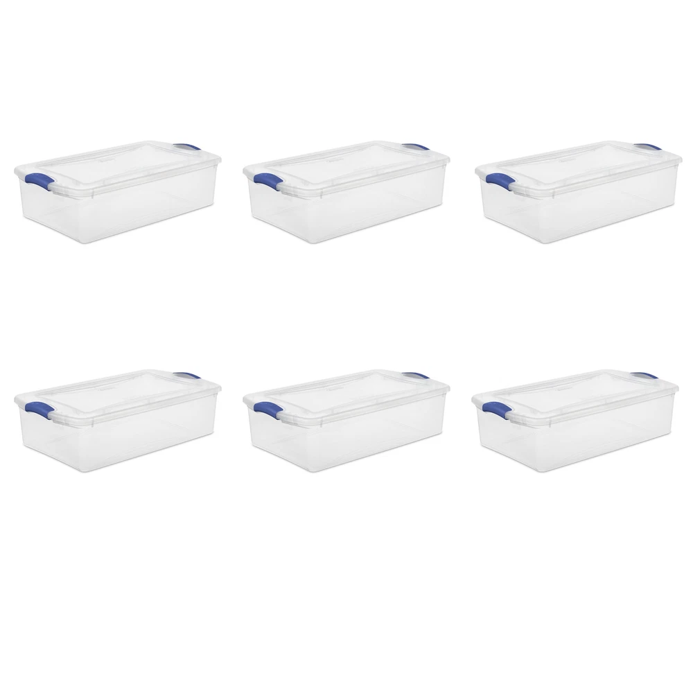 Keep your space organized with the versatile Sterilite 32 Quart Latch Box, featuring secure latches that keep the lid attached to the base, yet are still easy to unlatch. The clear base and lid allow contents to be easily identified from any angle, and multiple Latch Boxes are able to stack neatly on top of each other. This latching storage box conveniently fits under the bed and is the perfect storage solution for storing linens, towels, clothing and more. The indexed lids allow same size storage boxes to stack neatly on top of each other to use vertical storage space efficiently. The overall assembled dimensions of this item are 24" L x 16" W x 7" H. On Nov 6, 2024 at 04:01:15 PST, seller added the following information: