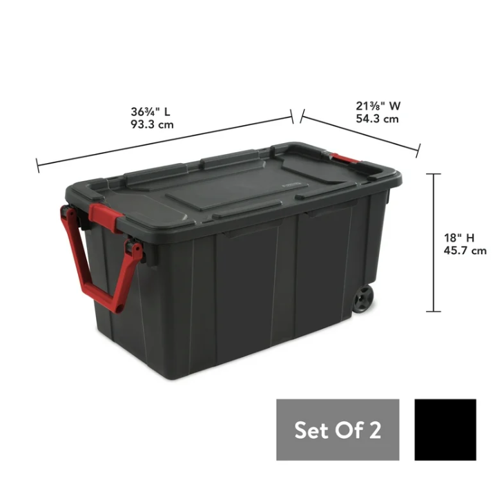 Sterilite 40 Gallon Black Wheeled Industrial Tote Set of 2