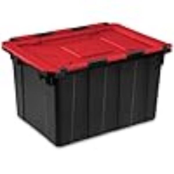 This item will be shipped through our US Stock, so arrive faster than expected Sterilit 6 Pack Hinged Lid Industrial Totes, 12 Gal Stackable Storage Bins, Black/Red Lid Brand Sterilit Color Black Material Plastic Special Feature Shatterproof, Durable, Lockable Style 6-Pack About this item Dimensions & Size: These organization and storage boxes have outside dimensions of 21 3/4" x 15 3/8" x 12 1/2" and interior dimensions at the bottom of 17 5/8" x 12 5/8" x 11 5/8" providing ample space for your storage needs. Durability & Security: Sterilite's Industrial Tote containers provide an ideal solution for storing and protecting items. With their durable, heavy-duty construction, these boxes ensure longevity and security for your stored belongings. Complete Protection: The lid ensures that your items are safeguarded against air and moisture, as well as dust and pests, providing comprehensive protection for your belongings. Secure & Durable: Zip tie hole design allows for lid to be kept securely shut. Integrated, contoured handles provide a comfortable grip for transporting Sterilite products are proudly made in the USA since 1939 and are BPA and phthalate-free.
