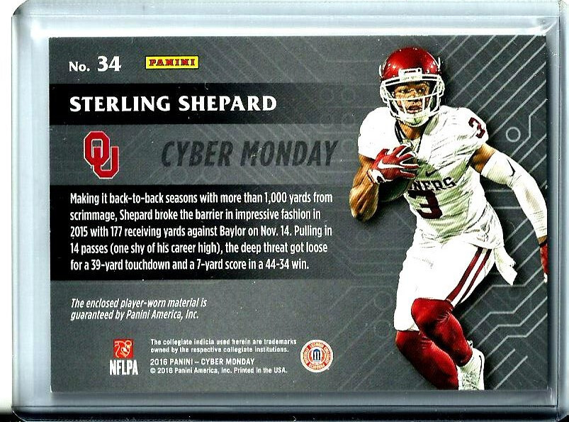 This card is a must-have for any Sterling Shepard or Sooners fan! The vibrant colors and high-quality patch relic make it stand out. A fantastic addition to any rookie collection—great detail and excellent condition. So happy to add this to my lineup!