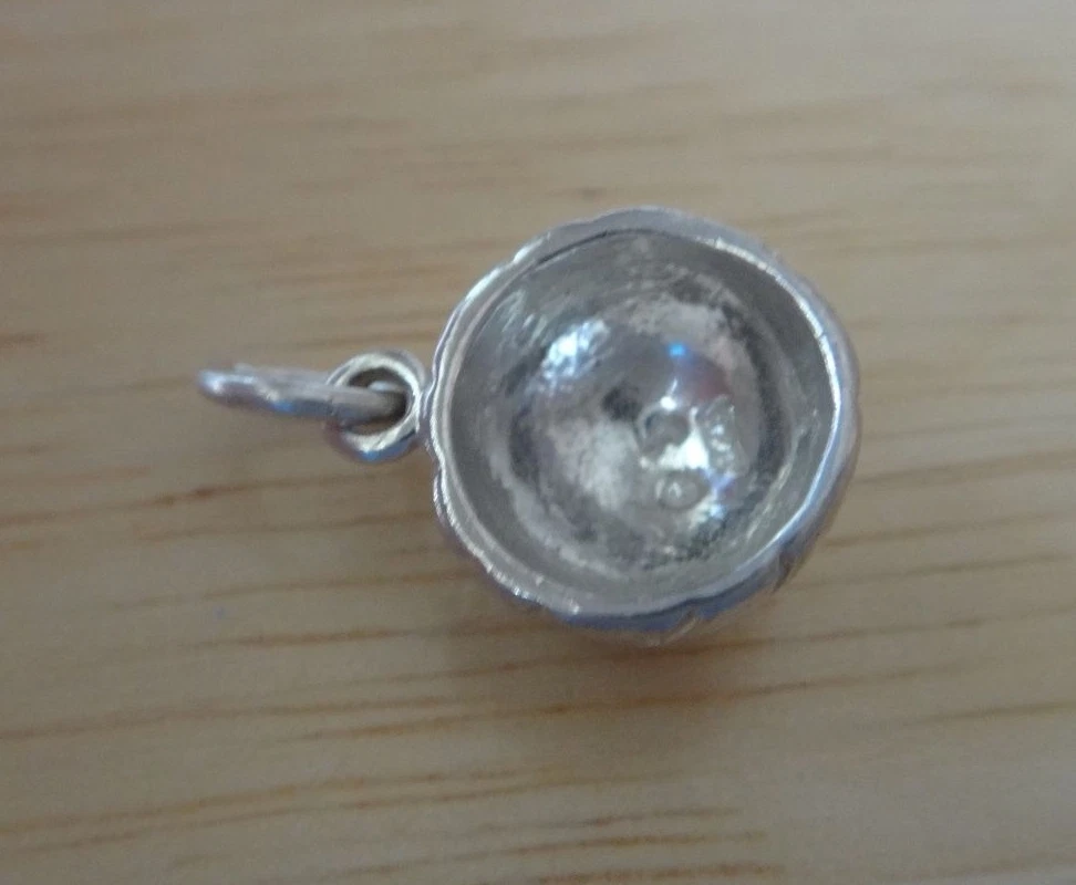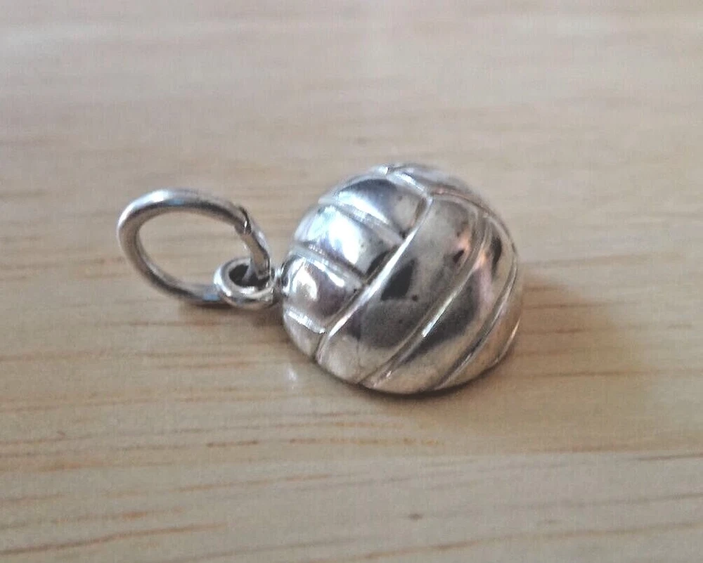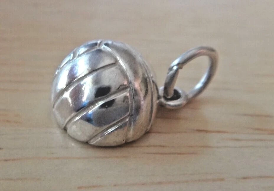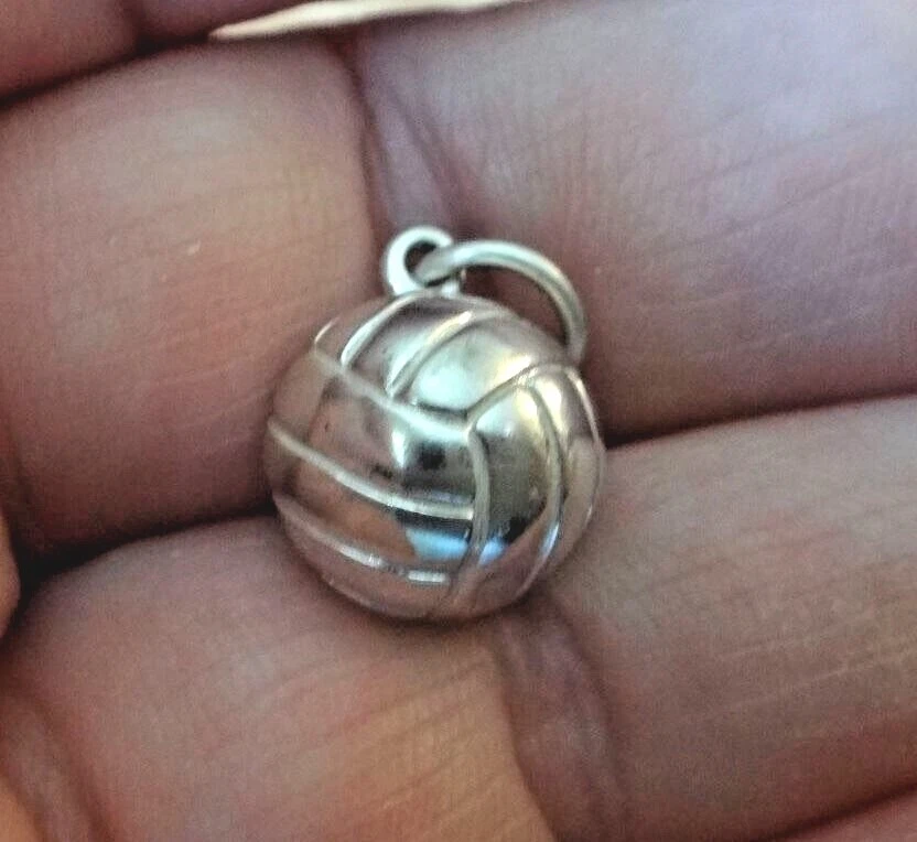 This sterling silver volleyball is 3/4 of a volleyball and hollow! It is so detailed at 13 mm in diameter. The photo shows both sides, but you are buying one. shb Look in my ebay store for the other volleyball charms also for sale! This and 75% of my inventory is on sale and on clearance. There are no returns on this item. Please make sure you look and the size and compare it on a ruler. Many items under $20 are small and maybe even tiny. I have a large number of customers that specifically looks for these tiny and small charms and earrings.