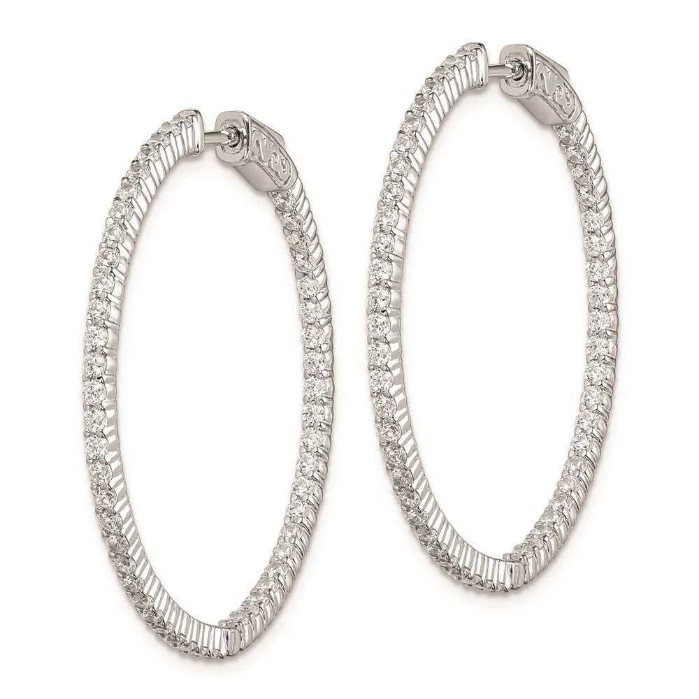 Sterling Silver 1.7mm Cubic Zirconia In & Out Round Hinged Hoop Earrings 6.16gm