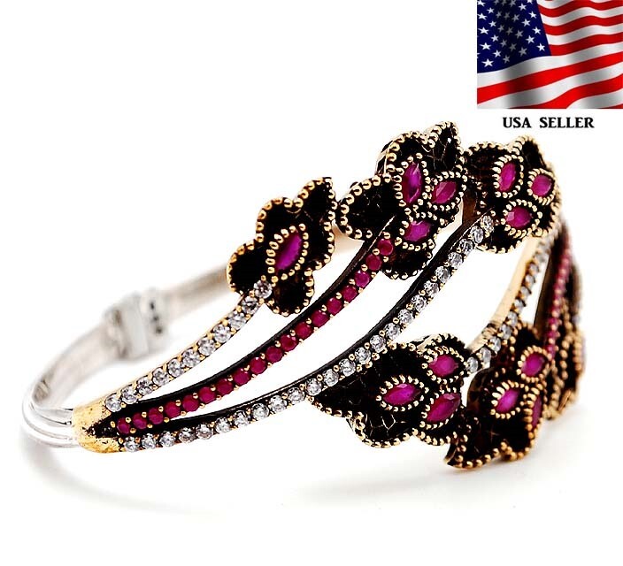 Menu Store FAQ Payment Shipping returns Feedback CONTACT US SHOP BY RING SIZE 4 4.5 5 5.5 6 6.5 7 7.5 8 8.5 9 9.5 10 10.5 11 11.5 All STORE CATEGORIES 99 cent daily deals Auctions Ending Soon New Arrivals Buy it now Rings Pendants Earrings Necklace Bangles & Bracelets POPULAR STONES Aquamarine TREATED RUBY Sapphire Pink Sapphire Emerald Topaz Opal Pearl Amethyst Blue Topaz Kunzite Herkimer Diamond Hand Carved Fossils Citrine Garnet Alexandrite Natural Rough Two-Tone Sterling Silver Store Newsletter Add old-english-silver to your Favorites and receive our e-mail newsletters about new items and special promotions. General Interest Sign Up Gemstone : TREATED RUBY & WHITE TOPAZ Metal : Genuine 925 Solid Sterling Silver Total Carat Wt : 6 Total Gram Wt : 22 Dimensions : 2'' X 2 1/2'', 7.5" Inner Circumference Shipping & Handling