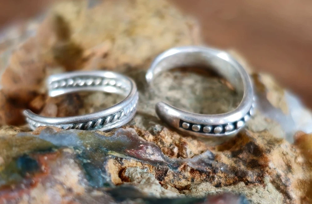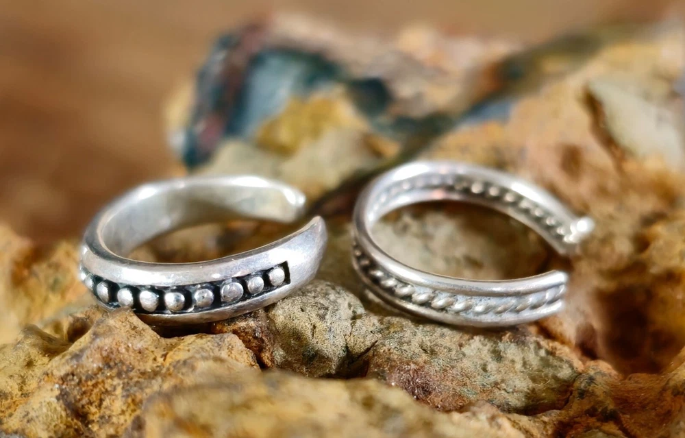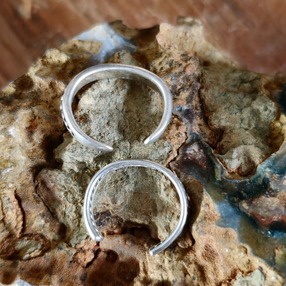 This set of adjustable silver-plated toe rings offers a classic and elegant look. Each ring features unique detailing, making them versatile for different styles. • Adjustable size for a comfortable fit • Silver-plated finish for durability • Unique detailing on each ring • Lightweight and easy to wear • Set of two rings Features: • 1 Ring has a 925 Marking • Adjustable, Studded and Rope Details Size: Womens One Size Condition: Pre-Owned Good Good condition Gently used There may be some scratches due to normal use Please review all descriptions and photos closely before purchasing, thank you! Smoke Free Workspace Please read the description for further details and measurements, Thank you!