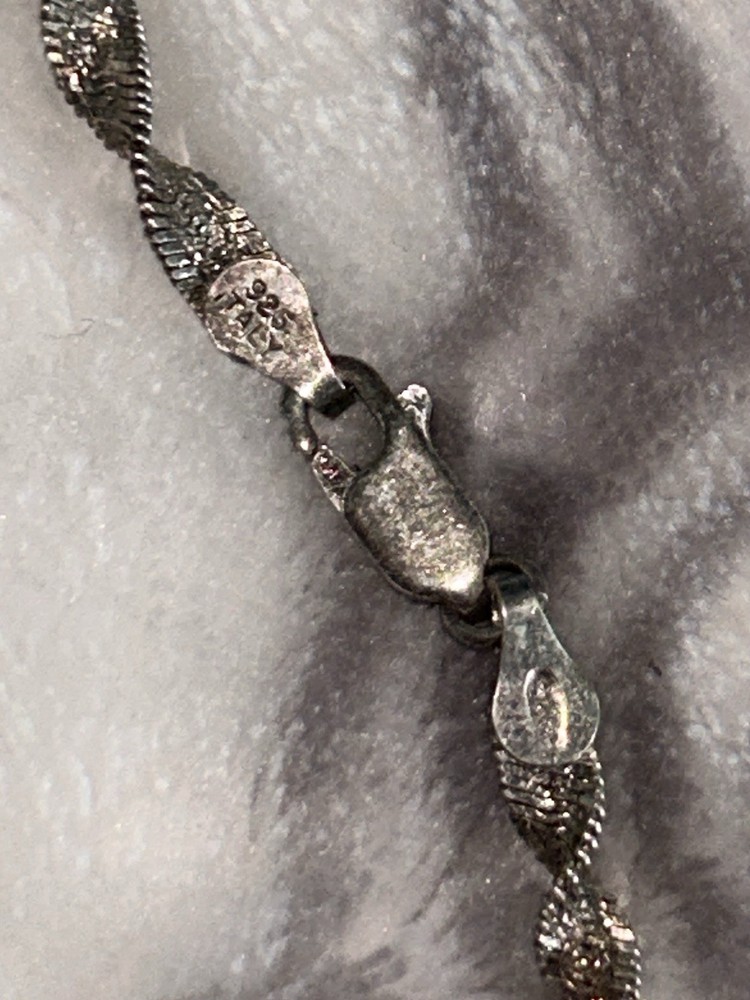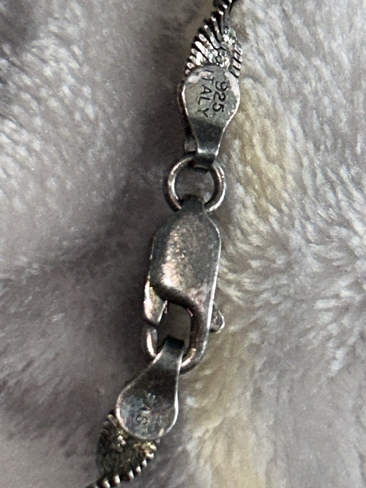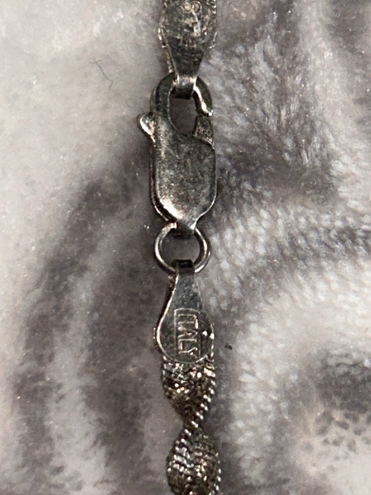 This product is a Sterling Silver 925 Italy Twisted Link Chain Necklace/ bracelet combo with a lobster clasp closure. The necklace is made of high-quality sterling silver and features a sleek chain style. The materials are sourced from Italy, ensuring exceptional craftsmanship and attention to detail. Perfect for those who appreciate fine jewelry and timeless pieces, this necklace is a stylish and elegant accessory that can complement any outfit or occasion.