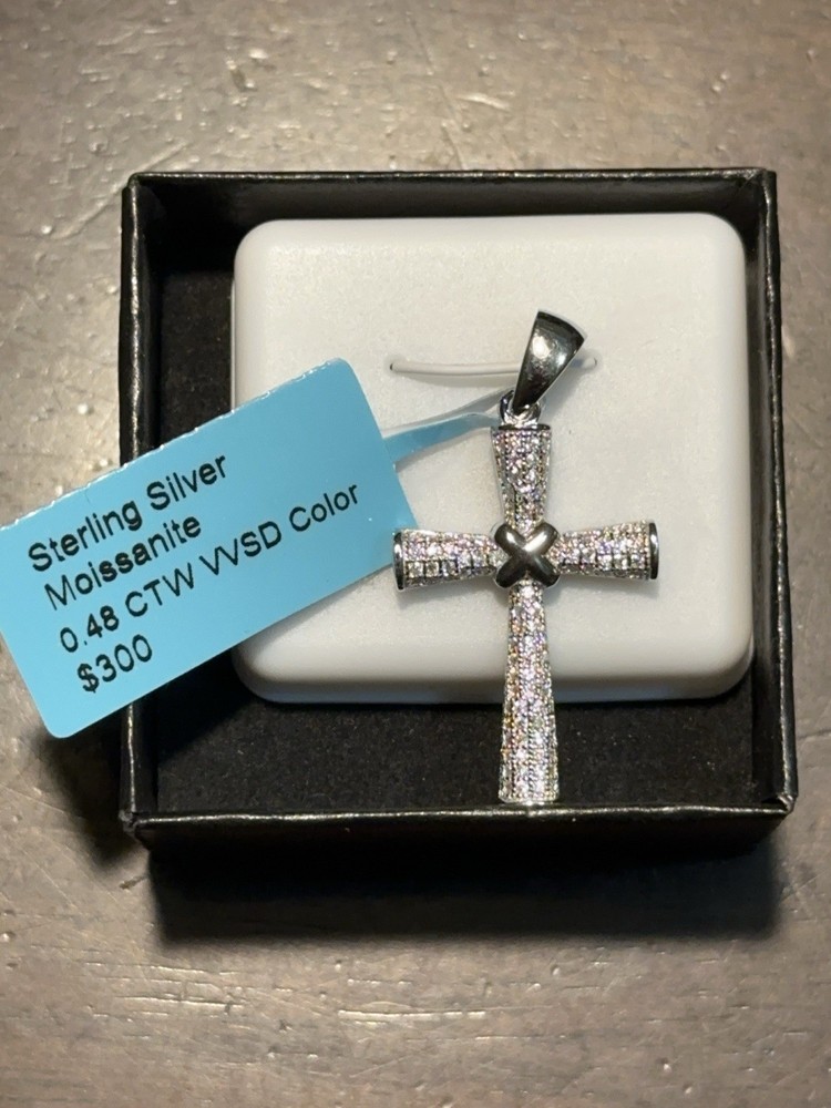 Occasion:Anniversary, Birthday, ChristmasDiamond Clarity Grade:Very, Very Slightly Included (VVS1)Base Metal:Sterling SilverBrand:UnbrandedNecklace Length:18 inMain Stone Color:WhiteMain Stone Creation:Lab-CreatedFeatures:Nickel-FreeSeller Warranty:YesNumber of Diamonds:1Gemstone Clarity Grade:Eye CleanPendant/Locket Type:CharmColored Diamond Intensity:FancyDiamond Color Grade:DMetal Purity:925Main Stone Shape:RoundStyle:PendantPendant Shape:CrossType:PendantSetting Style:ProngMain Stone:MoissaniteWholesale:YesMetal:Sterling SilverCut Grade:ExcellentColor:SilverMain Stone Treatment:Not EnhancedCustomized:Yes