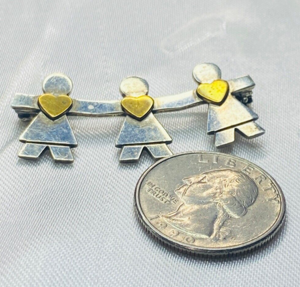 Sterling Silver 925 Naldo Brooch Girls Holding Hands with Gold Plated Hearts