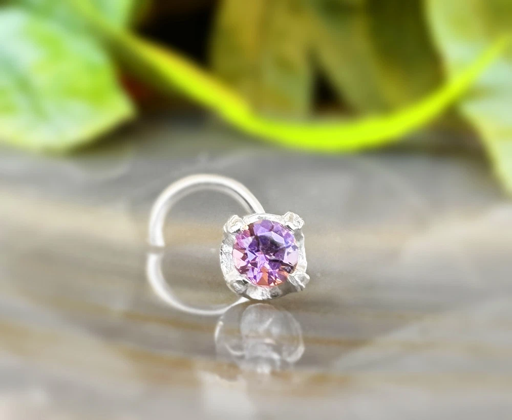This listing is for a single beautiful Nose Stud in Sterling silver and Amathyst Gemstone, Stone - 4 MM Amathyst, Metal - Sterling Silver 925, Super comfortable, ideal for long daily use, Will arrive in a pretty gift box ready to give or keep. Nose stud are handmade in Tbilisi city (Georgia) This listing is for a single nose stud. Gauges - (Post Thickness) 20 Gauge - 0.8mm 18 Gauge - 1.0mm No postage charge for additional items:) Please contact me for any questions. Thank you so much:) Leri