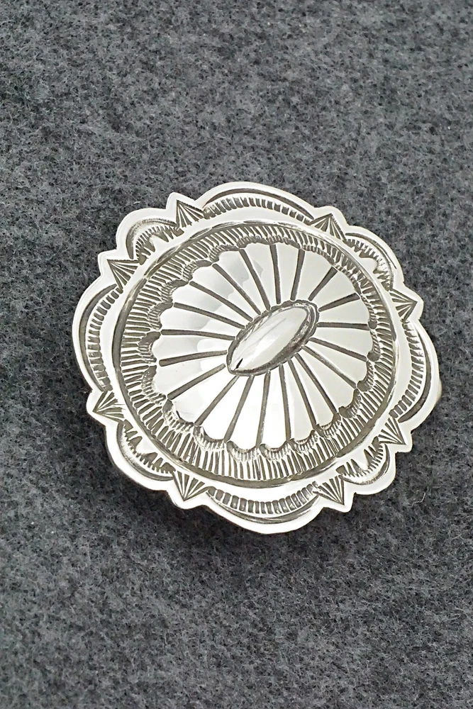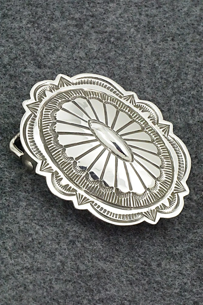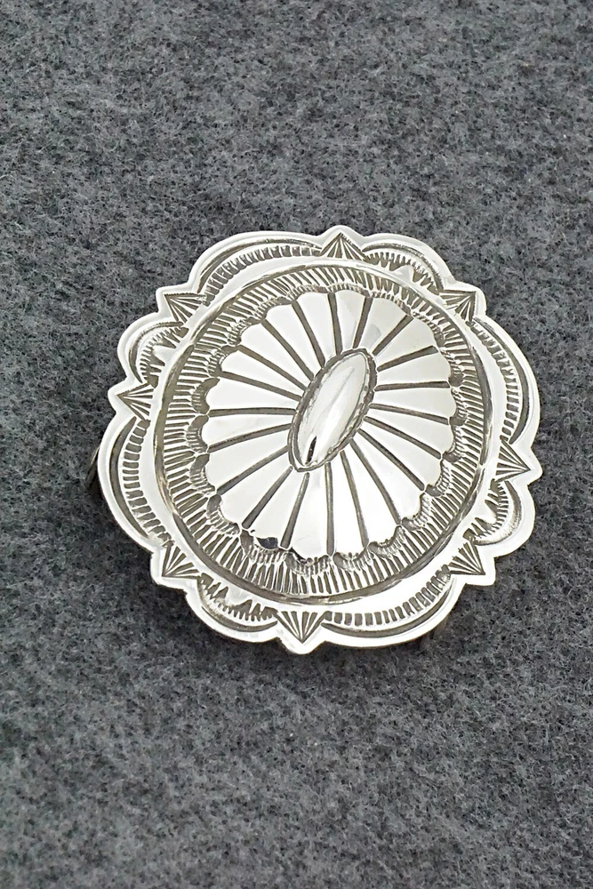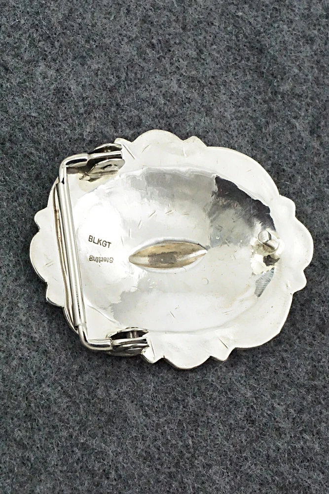 This sterling silver belt buckle was made by Navajo silversmith Arnold Blackgoat. The back of the buckle is signed BLKGT and stamped sterling. Length: 1 7/8" Width: 2 1/4" Free shipping on all orders! We ship with USPS and always include tracking. All orders ship within a day of payment. Returns are accepted up to 30 days after you receive your order. Just send us a message. Our shop offers cash back or store credit. The item must be returned in new condition.