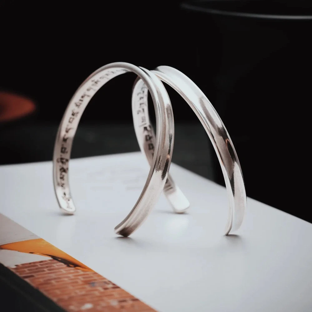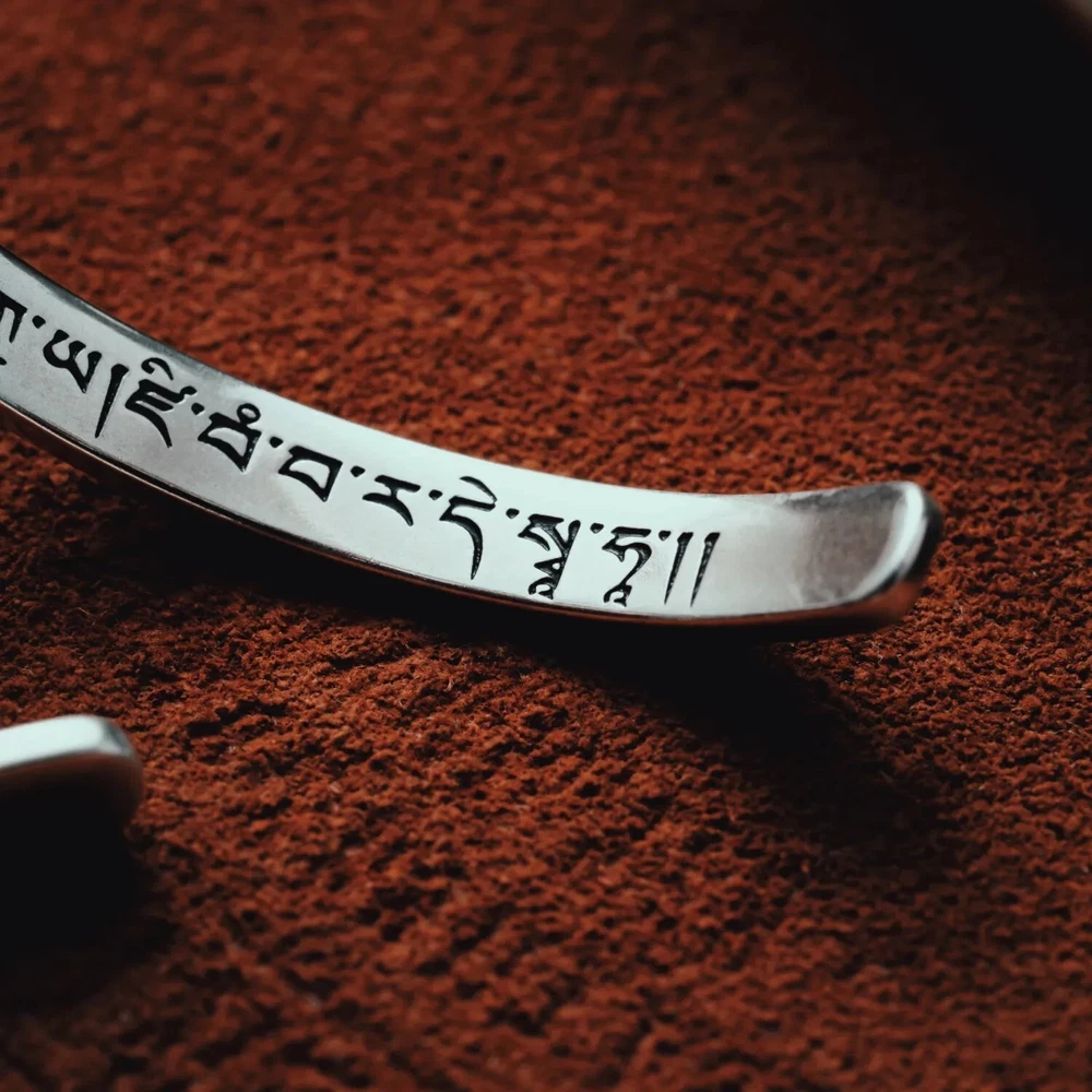 About this item *Buddhist Mantra Bracelet: Inspired by the Liberation Mantra, this bracelet symbolizes breaking free from life’s constraints. Its powerful inscription is traditionally recited to dispel troubles and navigate life’s challenges, serving as a steadfast companion through hardship. *Ingenious Design: The mantra text is delicately hand-engraved and filled with durable enamel for lasting vibrancy. With this bracelet, the mantra becomes a daily source of calm, guiding the wearer toward new beginnings and inner peace. *Material & Size: Expertly crafted from S925 silver, this Buddhist Mantra bracelet features an open-ended design for easy wear. Inner Diameter: 2.44" / 62mm; Inner Circumference: 7" / 180mm; Thickness: 0.09" / 2.4mm; Weight: Approximately 0.30oz / 8.5g. *Classic & Elegant: Its narrow form exudes subtle elegance, while the symbolic mantra provides ongoing strength and resilience. The minimalist, pristine design ensures long-term comfort and embodies a philosophy of simplicity, encouraging a release from worldly burdens. *Perfect Gift: This silver bracelet stands out as both a personal talisman and a thoughtful gift. Ideal for solo wear or layering, this piece blends spirituality with versatility, making it a meaningful choice for yourself or for loved ones seeking tranquility and inspiration.